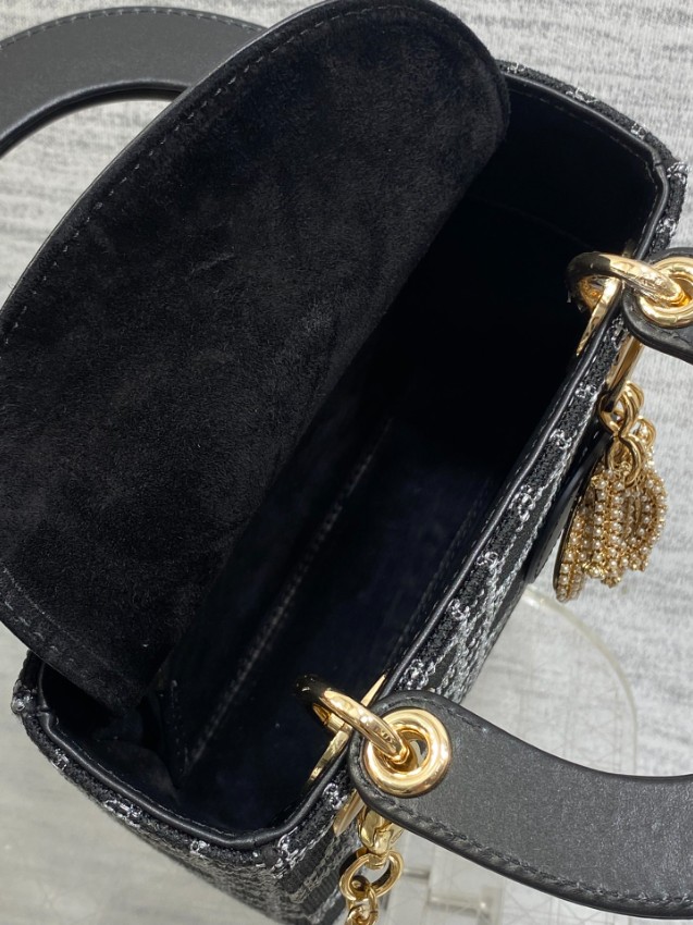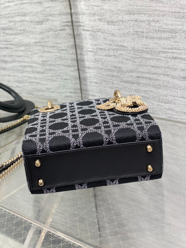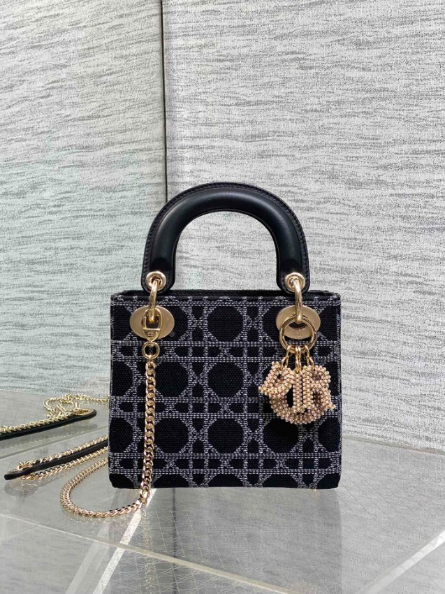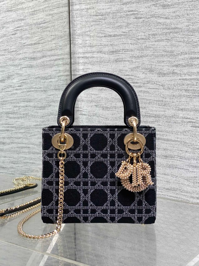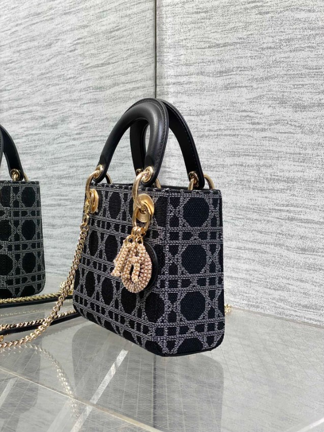 ディオールを代表するレディ ディオールシリーズの魅力を凝縮したミニバッグ。上質なブラックキャンバスに繊細なロゴ刺繍を施し、クラシカルでありながらモダンな印象を演出します。丸みのあるハンドルとゴールドのDIORチャームがアクセントとなり、エレガントな存在感を引き立てます。