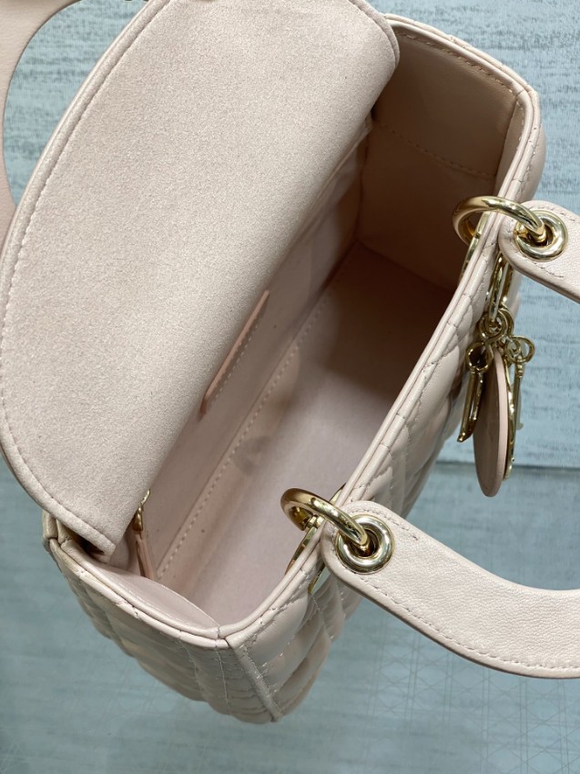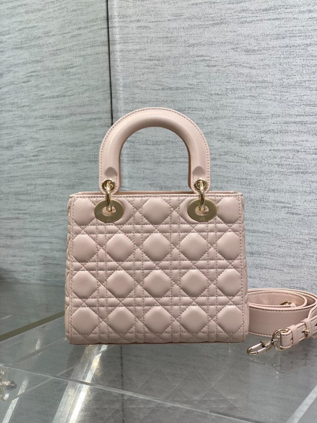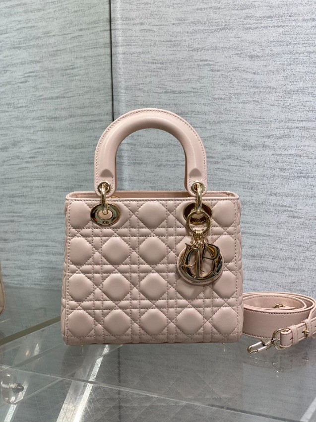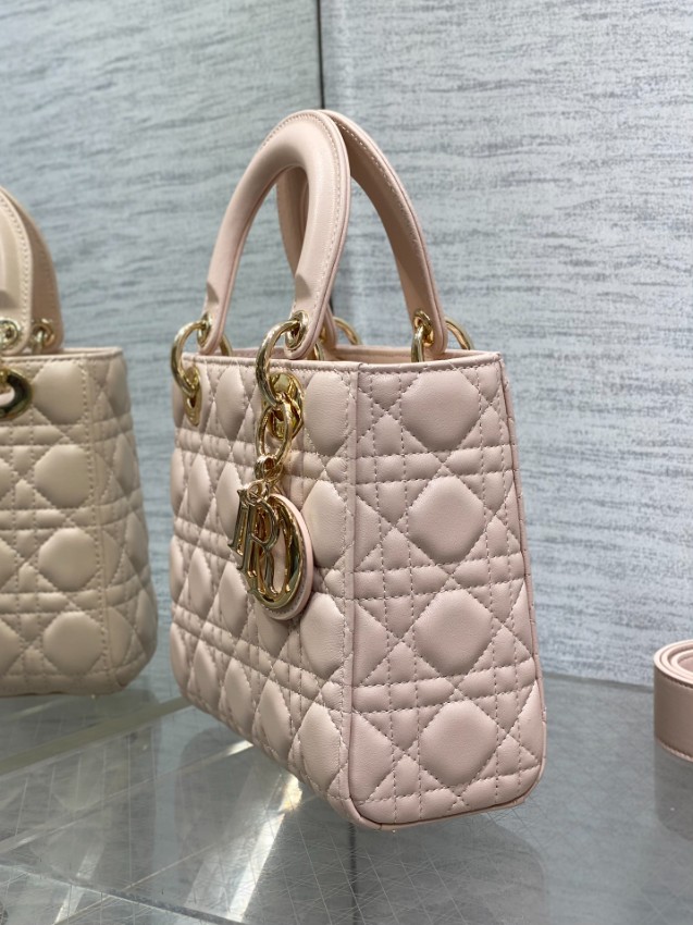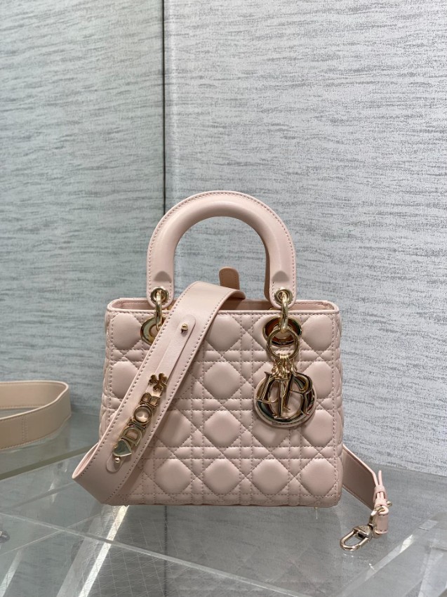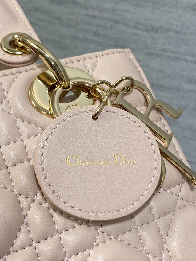 レディ ディオールシリーズのエレガントな魅力を引き立てる、フェミニンなピンクカラーのミニバッグ。上質なレザーに施されたカナージュキルティングがふんわりとした立体感を生み、柔らかな印象と高級感を同時に演出します。ゴールドのDIORチャームが揺れるたびに華やかさをプラスし、スタイル全体を上品に引き締めます。