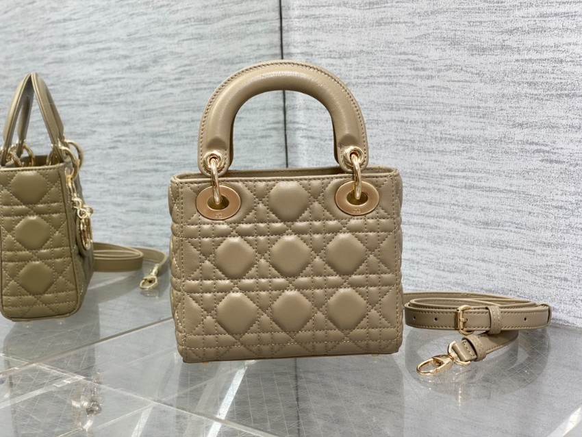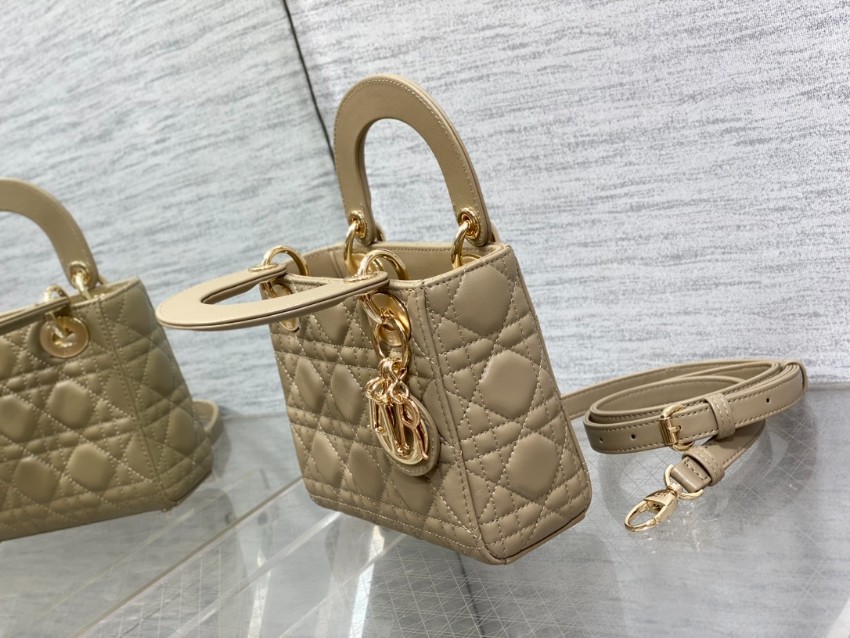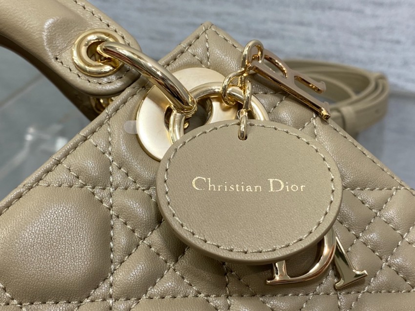 レディ ディオールシリーズのアイコニックなデザインをそのままに、落ち着いたベージュカラーで仕上げたミニバッグ。上質なレザーに施されたカナージュキルティングが立体感を生み出し、柔らかな光沢とともに上品な雰囲気を演出します。ゴールドのDIORチャームが揺れるたびに華やかさを添え、シンプルながら存在感のあるスタイルに仕上がっています。
