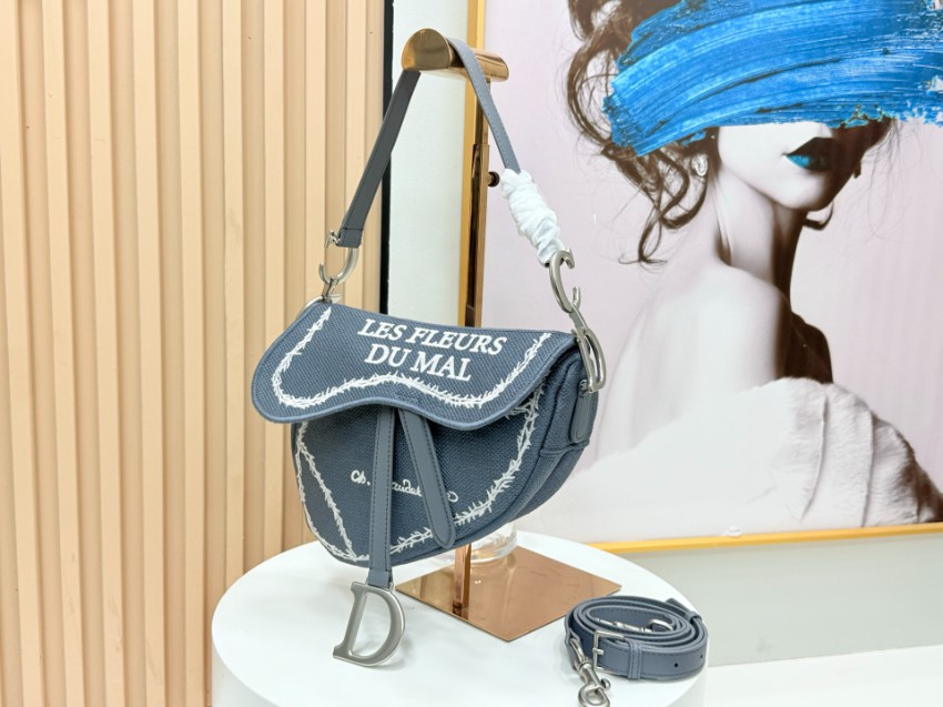 商品説明:ディオールのアイコンであるサドルシリーズをベースにしたハイブランドテイストのショルダーバッグ。落ち着いたブルーカラーのキャンバスに繊細な刺繍ロゴと装飾ラインを施し、クラシックとモダンが融合したデザインが魅力です。独特な曲線フォルムがスタイリングに柔らかな印象を与え、女性らしい上品さを引き立てます。フロントには象徴的なDモチーフ金具を配置し、ブランドらしい存在感をプラス。ショルダーストラップは取り外し・調整可能で、肩掛けや斜め掛けなど幅広いスタイルに対応します。カジュアルからきれいめコーデまで自然に馴染み、ディオール サドル ハイブランド バッグをお探しの方におすすめの一品です。
