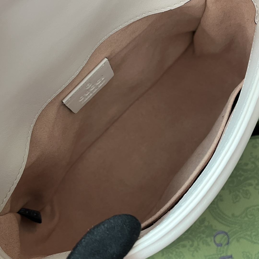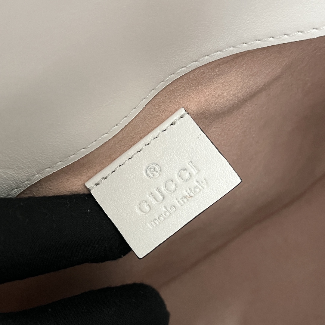 グッチGGマーモントシリーズの魅力を存分に感じられる2WAYミニバッグです。柔らかなホワイトレザーに施されたシェブロンキルティングが立体感を生み、フロントのダブルGロゴが高級感を演出します。上質な素材感と細やかなステッチワークにより、見た目だけでなく耐久性にも配慮された仕上がり。チェーンストラップはショルダーとクロスボディの2WAY仕様で、シーンに応じた使い分けが可能です。コンパクトなサイズ感ながらスマートフォンやミニウォレットなど必要なアイテムをしっかり収納でき、日常使いから旅行、デートシーンまで幅広く対応。コピーアイテムとして細部まで再現されたデザインで、グッチらしい洗練された雰囲気を気軽に取り入れられる一品です。淡いカラーコーデにも映える、使い勝手の良いバッグです。