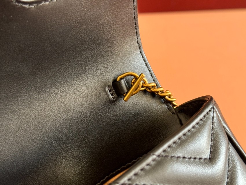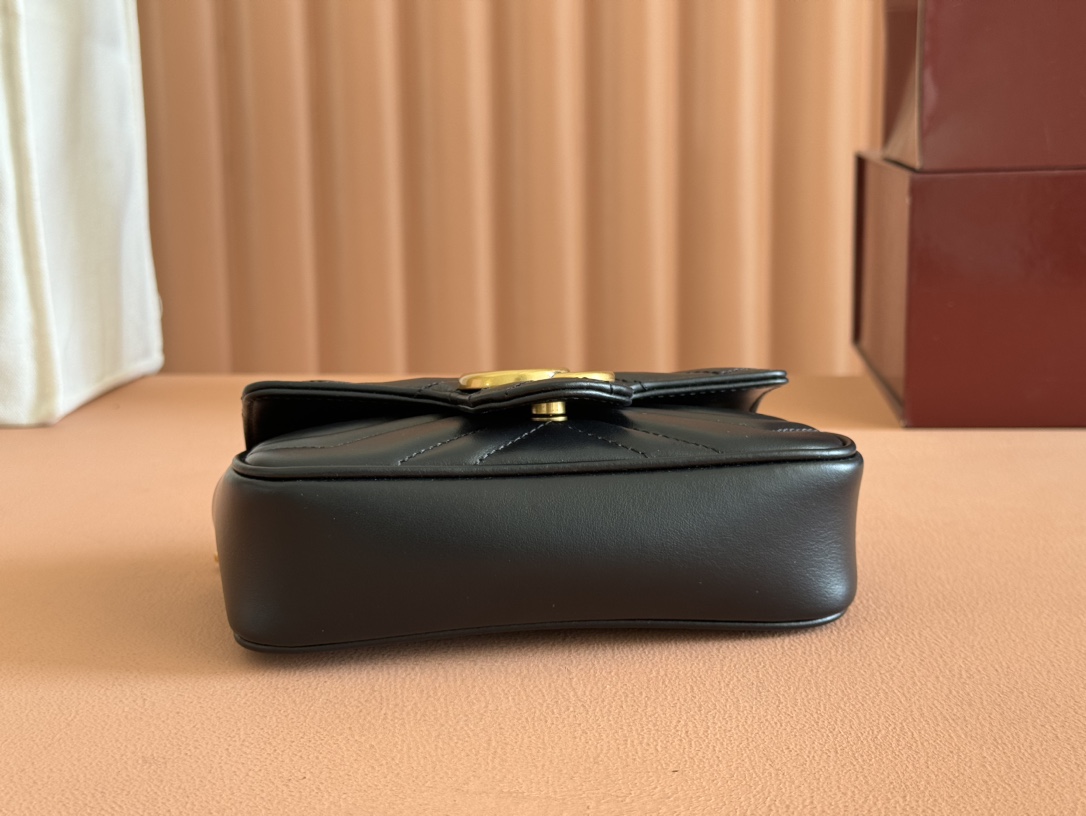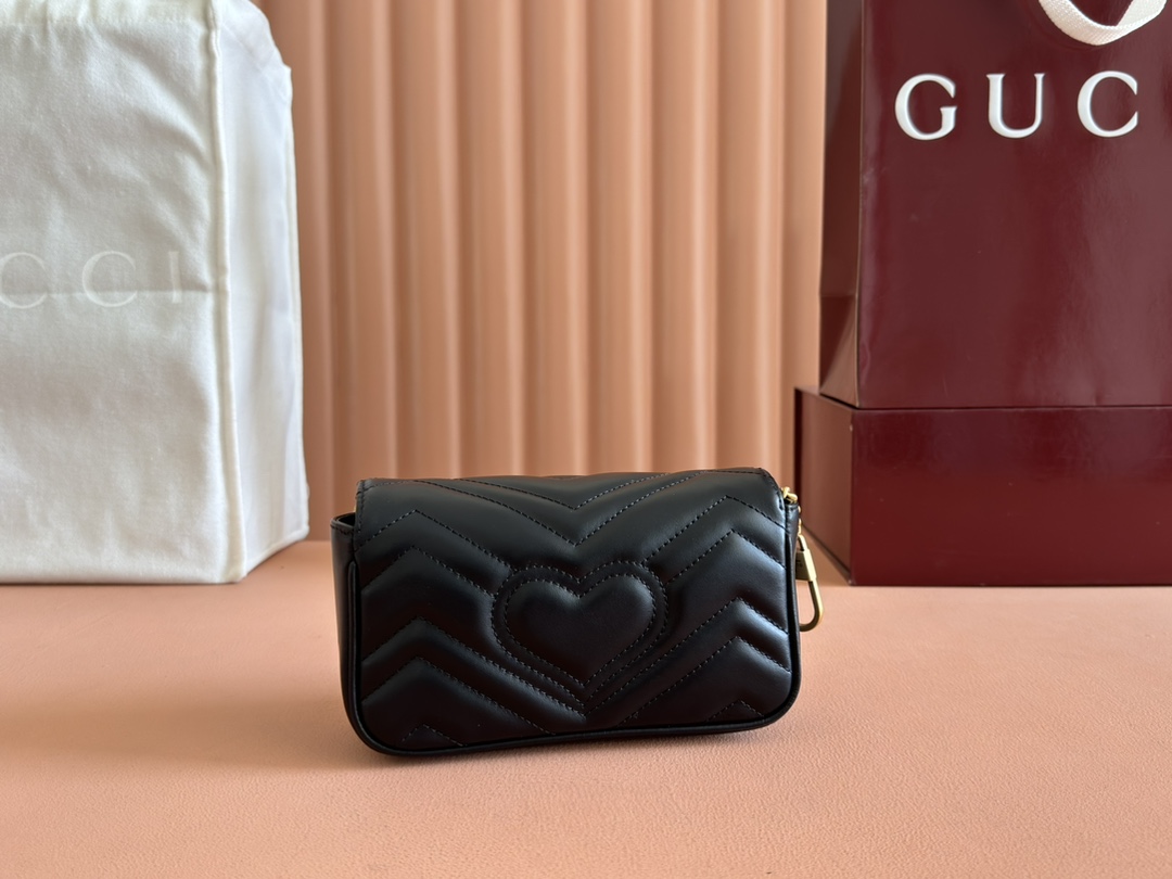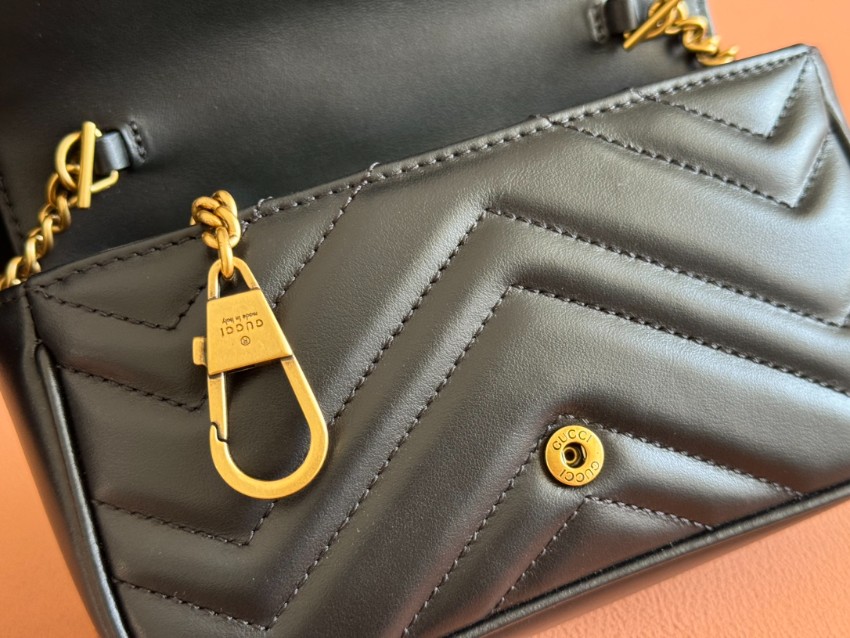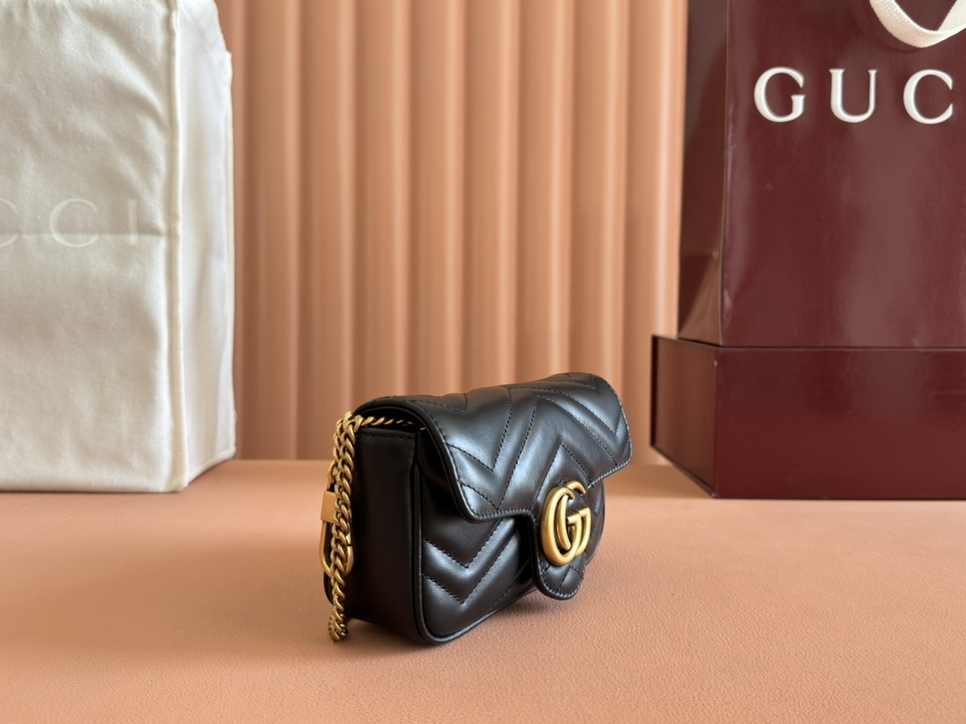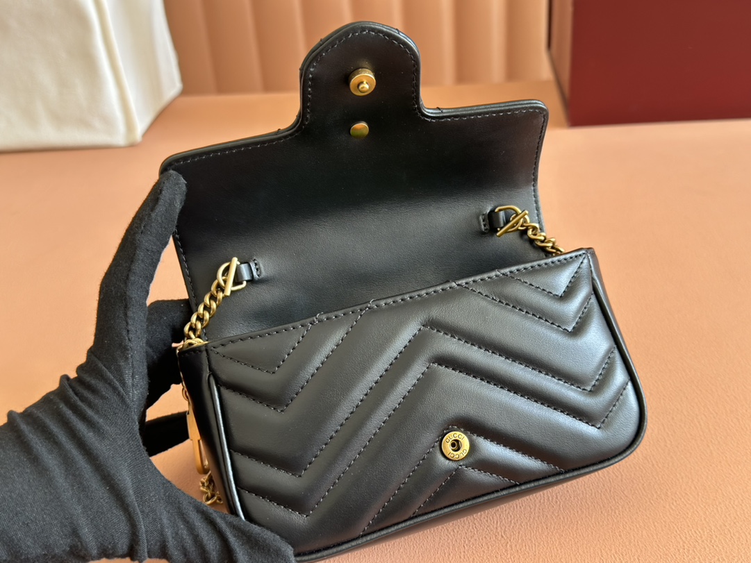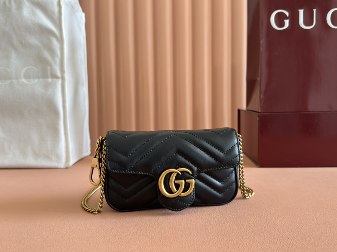 グッチGGマーモントシリーズの魅力を象徴するミニショルダーバッグです。ブラックのキルティングレザーが落ち着いた高級感を演出し、フロントに配置されたダブルGロゴがブランドらしい存在感を際立たせます。コンパクトなフォルムながら、スマートフォンやミニウォレットなど必要なアイテムをしっかり収納でき、日常使いにも便利な設計。軽やかなチェーンストラップは肩掛けしやすく、カジュアルからフォーマルまで幅広いスタイリングにマッチします。並行輸入品として仕上げられた本アイテムは、細部のステッチや金具の質感にもこだわり、グッチらしい洗練された雰囲気を手軽に楽しめるのが魅力。デートやショッピング、旅行など様々なシーンで活躍する、実用性とデザイン性を兼ね備えた一品です。