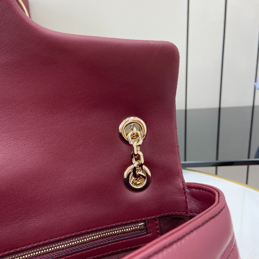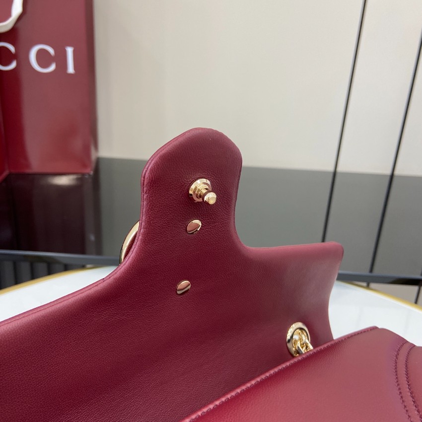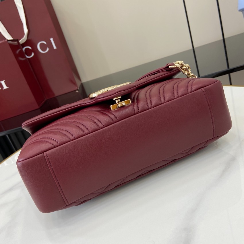 グッチGGマーモントシリーズのエレガントな魅力を感じられるミニショルダーバッグです。深みのあるワインレッドカラーのレザーにシェブロンキルティングを施し、落ち着いた中にも華やかさを兼ね備えたデザインに仕上げています。フロントにはゴールドのダブルGロゴを配置し、ラグジュアリーなアクセントとして存在感を発揮。コンパクトなサイズながら、スマートフォンやミニウォレット、コスメなどの必需品をしっかり収納でき、日常使いにも最適です。チェーンストラップは肩掛けやクロスボディとして使いやすく、カジュアルからきれいめスタイルまで幅広く対応。スーパーコピー 届く品質として細部の縫製や金具の仕上がりにもこだわり、グッチらしい上品な雰囲気を気軽に楽しめます。デートやショッピング、旅行など様々なシーンで活躍する万能バッグです。