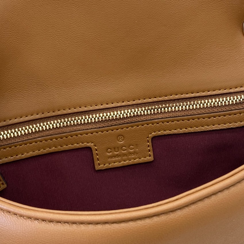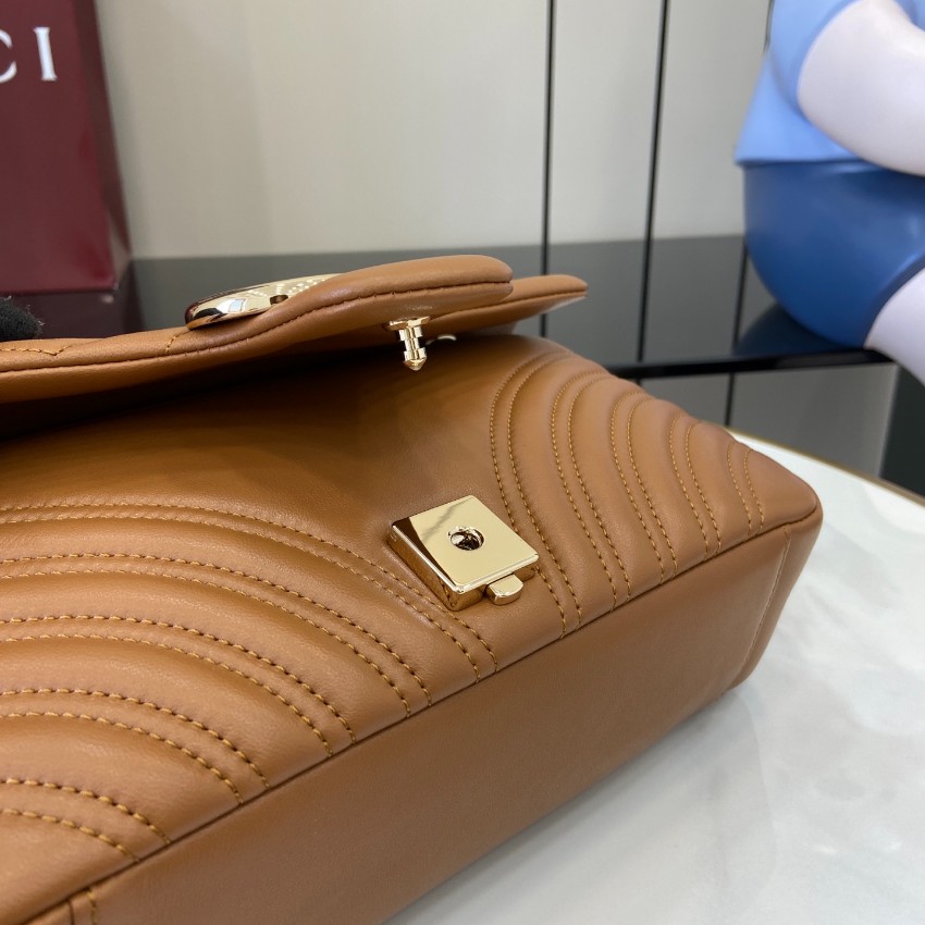 グッチGGマーモントシリーズのクラシックな魅力を引き立てるミニショルダーバッグです。落ち着いたキャメルカラーのレザーに施されたシェブロンキルティングが柔らかな立体感を生み、フロントのゴールドダブルGロゴが上品なアクセントとして際立ちます。程よいサイズ感でスマートフォンやミニウォレット、コスメなどの必需品をしっかり収納可能。軽やかなチェーンストラップは肩掛けやクロスボディとして使いやすく、カジュアルからきれいめスタイルまで幅広く対応します。n級品として細部の縫製や金具の質感にもこだわり、グッチらしい洗練された雰囲気を手軽に楽しめるのも魅力。季節を問わず活躍し、コーディネートに温かみをプラスする万能バッグです。