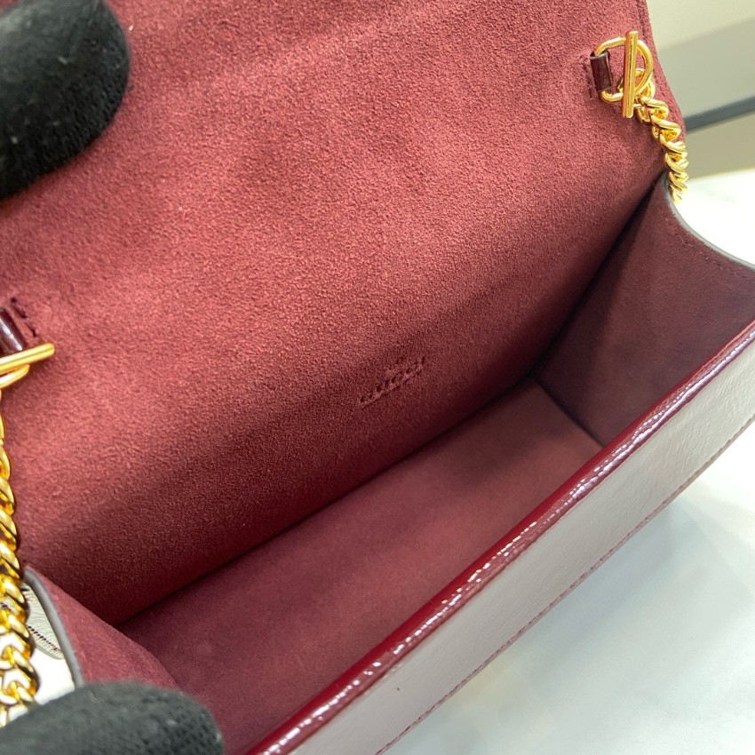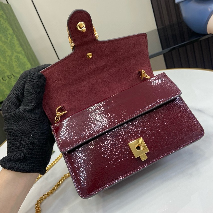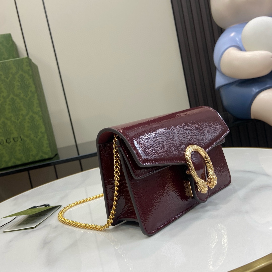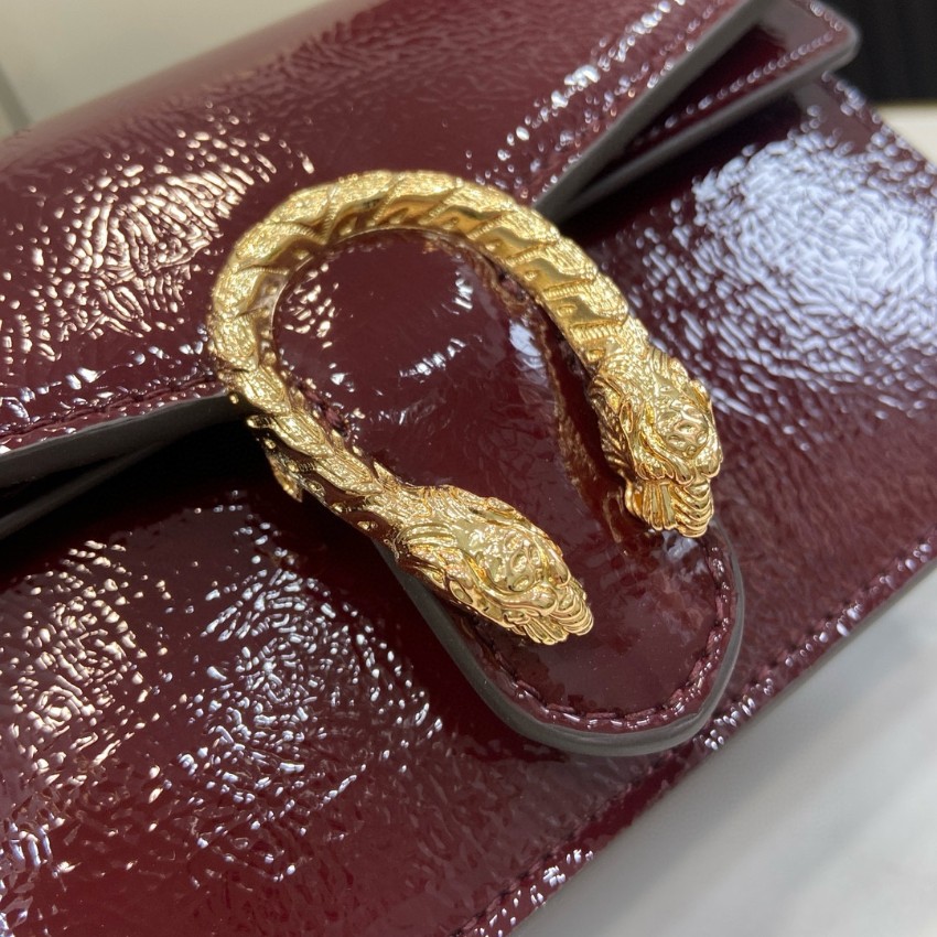 商品説明:グッチの人気シリーズであるディオニュソスをベースに仕上げたハイブランドショルダーバッグは、洗練されたデザインと華やかな質感が魅力です。光沢のあるエナメル調ボルドーレザーを採用し、深みのあるカラーがコーディネートに高級感をプラス。フロントには象徴的なディオニュソス金具を配置し、ブランドらしいアイコニックな印象を際立たせています。チェーンストラップは肩掛けやクロスボディとして使用でき、シーンに応じたスタイリングが可能。コンパクトなサイズながら収納力もあり、スマートフォンや財布などの必需品をしっかり収納できます。パーティーやディナー、デイリーのお出かけまで幅広く活躍し、エレガントなハイブランドスタイルを気軽に楽しめる注目のアイテムです。