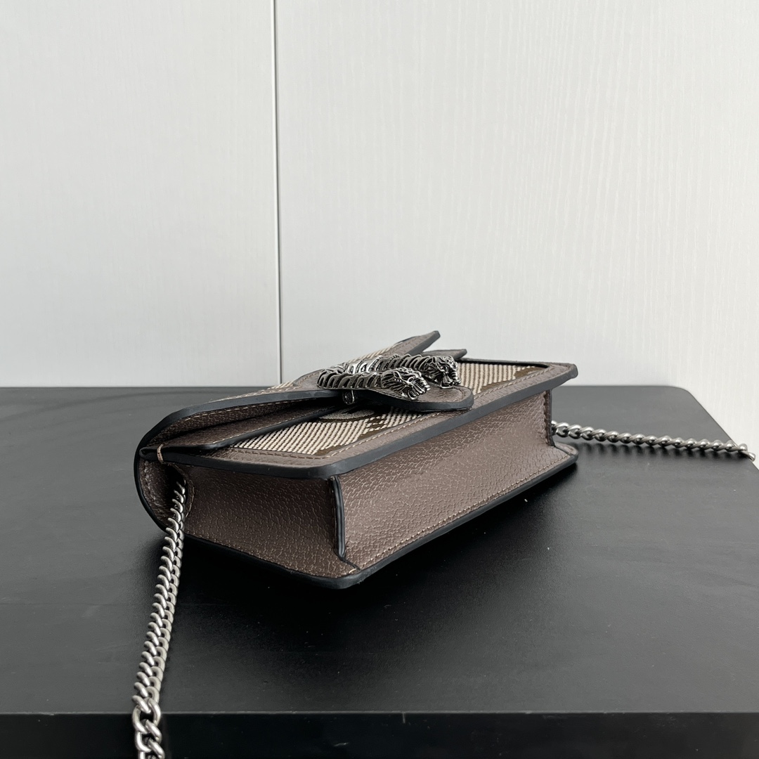 商品説明:グッチの人気ディオニュソスシリーズをベースに仕上げたスーパーコピーコンパクトバッグは、クラシカルなGGキャンバスとレザーのコンビデザインが魅力です。ブラウン系カラーで統一された落ち着いたトーンが大人の上品さを引き立て、フロントには象徴的なディオニュソス金具を配置し、ブランドらしい存在感を演出します。コンパクトなサイズ感ながらも、スマートフォンやミニウォレット、小物類をしっかり収納できる実用性を備えています。チェーンストラップ付きでショルダーやクロスボディとしても使いやすく、日常使いから旅行、カフェシーンまで幅広く対応。ハイブランドスタイルを気軽に楽しめる、使い勝手の良いアイテムです。