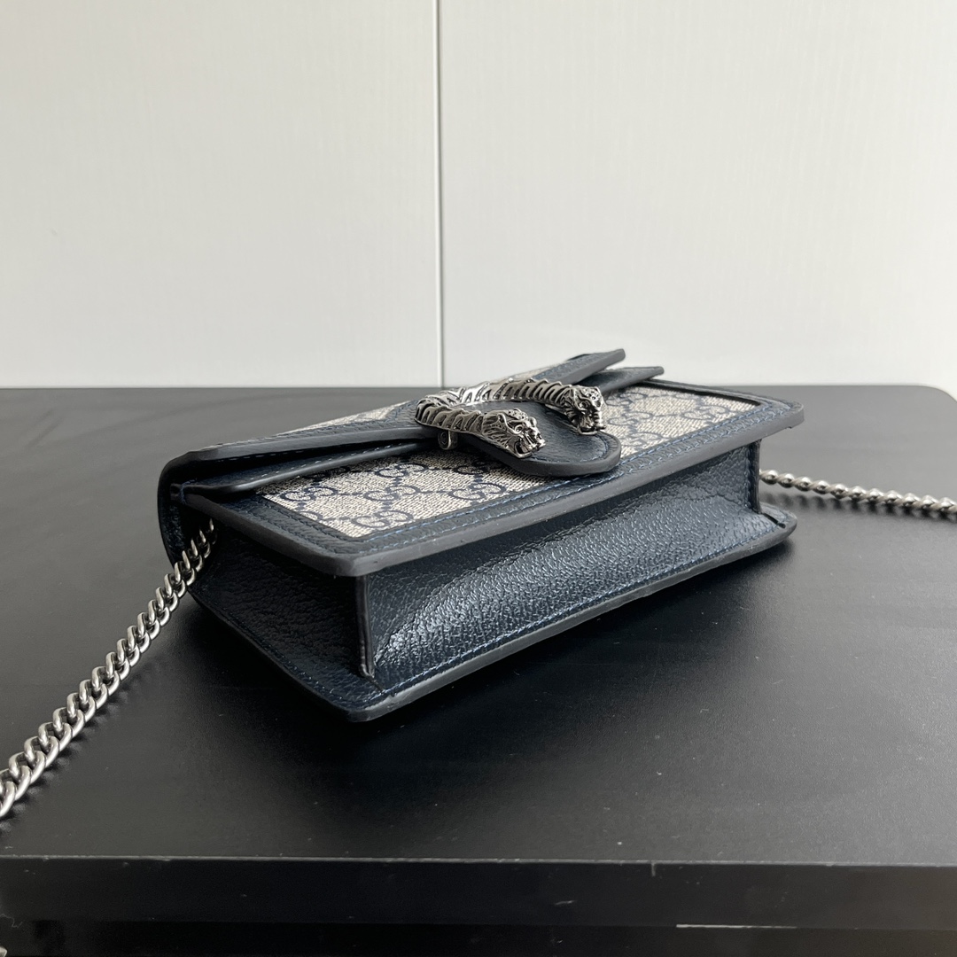 商品説明:グッチの人気ディオニュソスシリーズをモチーフにした並行輸入品コンパクトバッグは、クラシカルなGGキャンバスとネイビーレザーのコンビネーションが魅力です。落ち着いたネイビートーンが全体を引き締め、大人らしい上品な印象を演出。フロントにはディオニュソスを象徴するアイコニックな金具を配置し、ブランドらしい存在感をしっかりと表現しています。コンパクトなサイズながら、スマートフォンやミニウォレット、小物類を効率よく収納できる実用性も備えています。チェーンストラップ付きでショルダーやクロスボディとしても活用でき、カジュアルスタイルからきれいめコーデまで幅広く対応。日常使いからお出かけ、旅行シーンまで活躍する万能アイテムです。