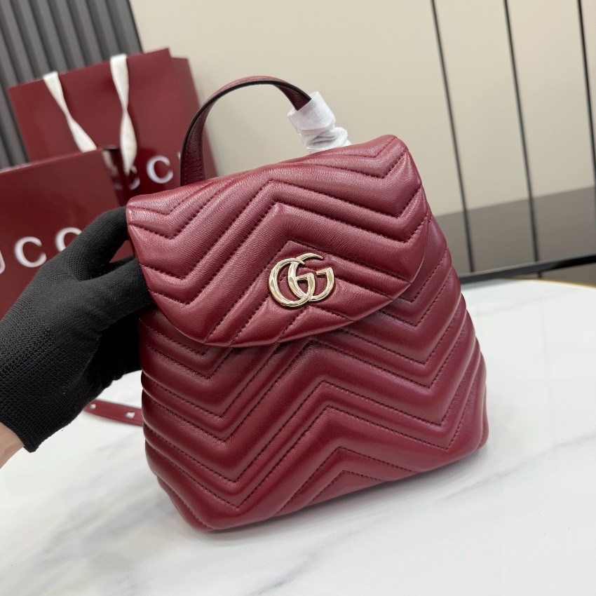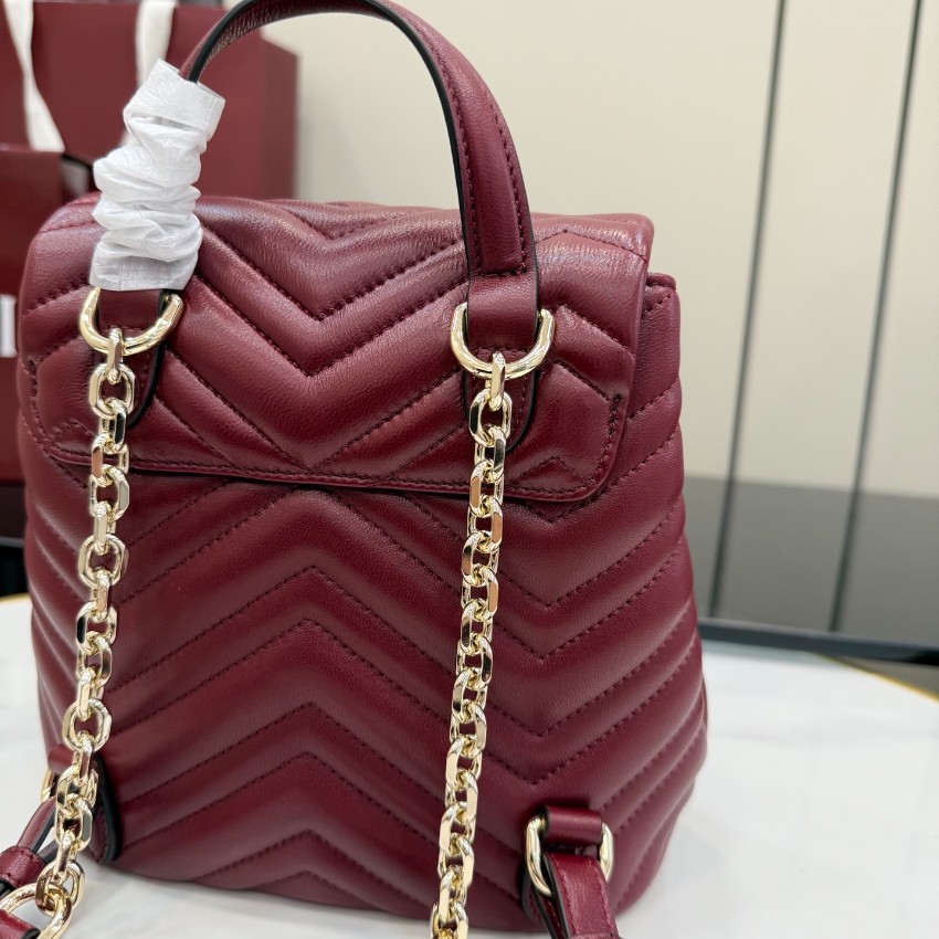 商品説明:グッチ GGマーモントシリーズのデザインをベースにした並行輸入品バックパックは、シェブロンキルティングが立体的な表情を生み出し、洗練された印象を与える一品。柔らかなレザー調素材を使用し、丁寧なステッチと金具ディテールにより上質感を演出しています。フロントポケット付きで小物の整理がしやすく、日常使いにも便利な設計。コンパクトなサイズ感ながら収納力があり、スマートフォンや財布などの必需品をしっかり持ち運べます。ワインレッド系カラーはシンプルな装いのアクセントにもなり、大人の落ち着いたスタイルにマッチ。GGマーモント特有のクラシカルな魅力とモダンな使いやすさを兼ね備えた、実用性の高いバックパックです。