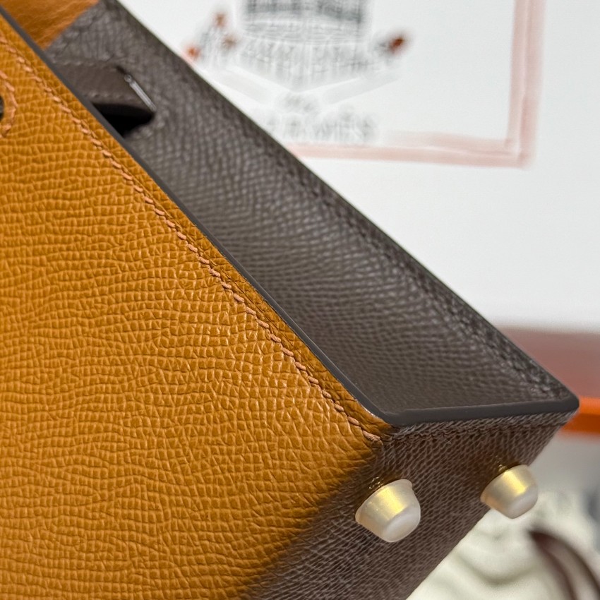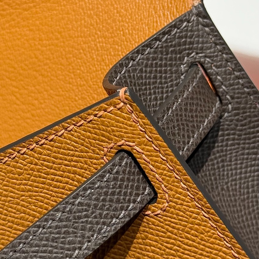 商品説明:エルメス 並行輸入品 ケリー ケリーミニをベースにしたハンドバッグは、タイムレスな魅力と上品なカラーリングが特徴のモデルです。温かみのあるブラウンカラーにダークトーンのフラップ切替を組み合わせ、落ち着きのある大人らしい印象を演出します。ゴールド金具がアクセントとなり、クラシカルで高級感のある雰囲気を引き立てます。細かなシボ感を再現したレザー風素材を使用し、しっかりとした質感と丁寧な縫製により完成度の高い仕上がりを実現。取り外し可能なストラップ付きで、ハンドバッグとしてはもちろんショルダーバッグとしても使える2WAY仕様。日常使いからお出かけまで幅広いシーンに対応し、エルメスらしいエレガントなスタイルを気軽に楽しめるアイテムです。