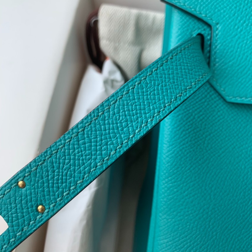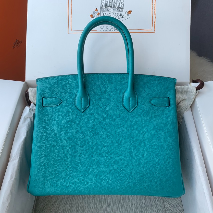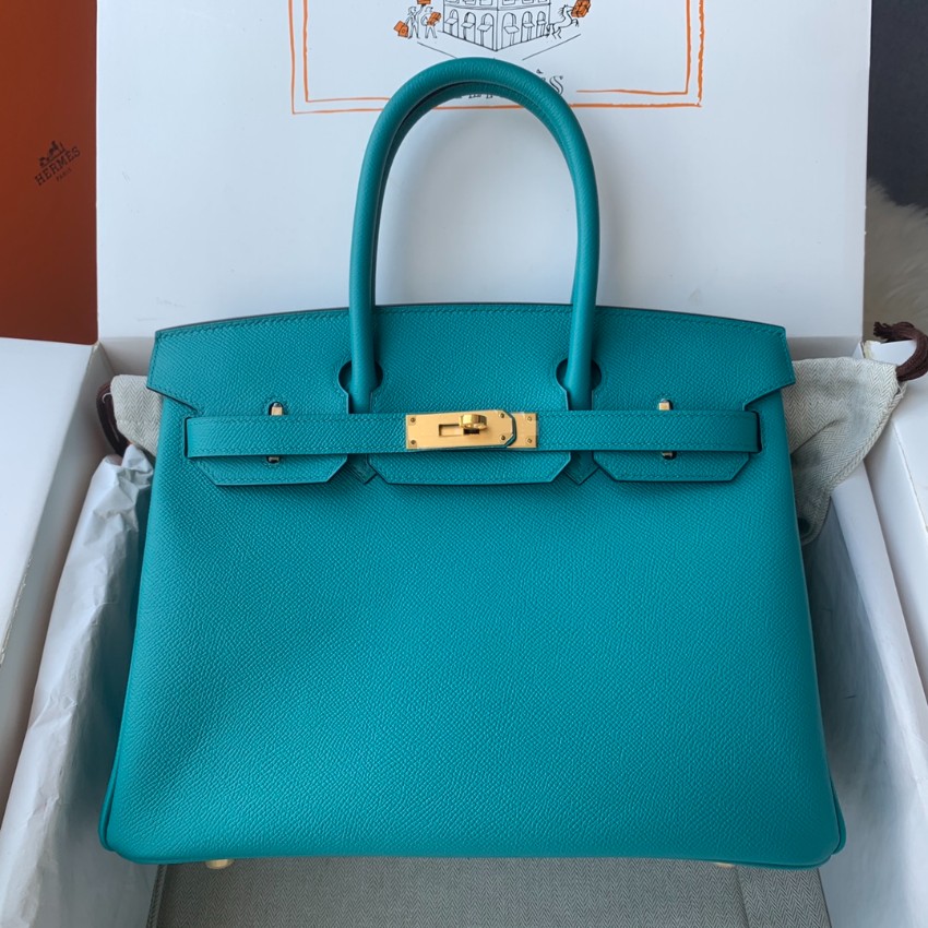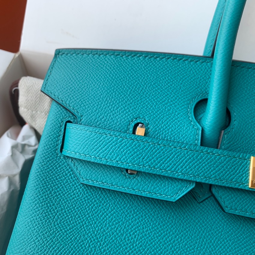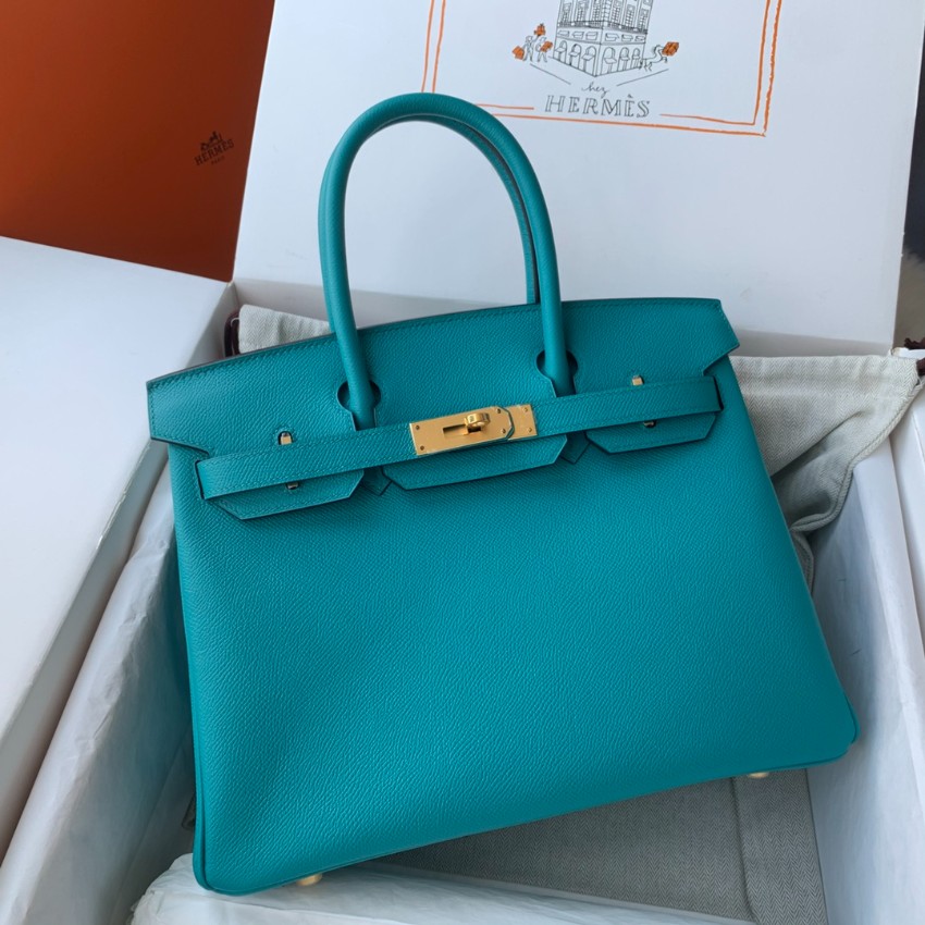 エルメスを代表するバーキンをベースに仕上げた本モデルは、鮮やかなターコイズブルーカラーが印象的なハンドバッグ。視線を引きつける発色の良さと、クラシカルなフォルムが絶妙に融合し、スタイル全体を格上げします。