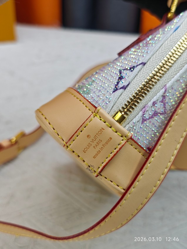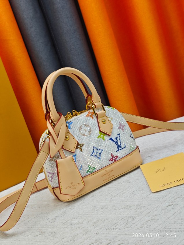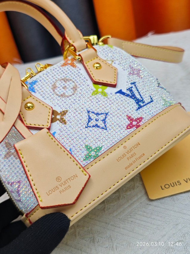 商品説明:ルイヴィトンの人気ライン「アルマ」をベースにしたスーパーコピー 届くミニバッグは、ホワイトカラーのボディにマルチカラーのモノグラムをあしらい、さらにビジュー装飾を施した華やかなデザインが特徴です。光を受けて輝くディテールが上品さと存在感を引き立て、コーディネートのアクセントとしても優秀。ヌメ革ハンドルとゴールド金具の組み合わせが高級感を演出し、ブランドらしいエレガントな雰囲気を際立たせます。ショルダーストラップ付きで2WAY使用が可能なため、ハンドバッグとしても斜め掛けバッグとしても活躍。コンパクトサイズながら財布やスマートフォンなどの必需品をしっかり収納でき、日常使いからお出かけまで幅広いシーンに対応します。アルマシリーズの魅力を存分に楽しめる、レディースミニバッグとしておすすめの一品です。