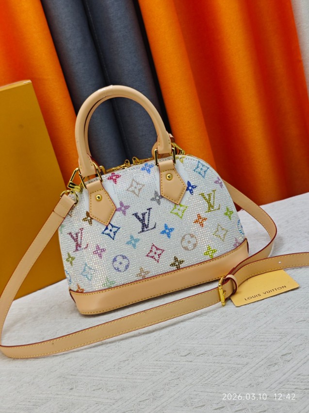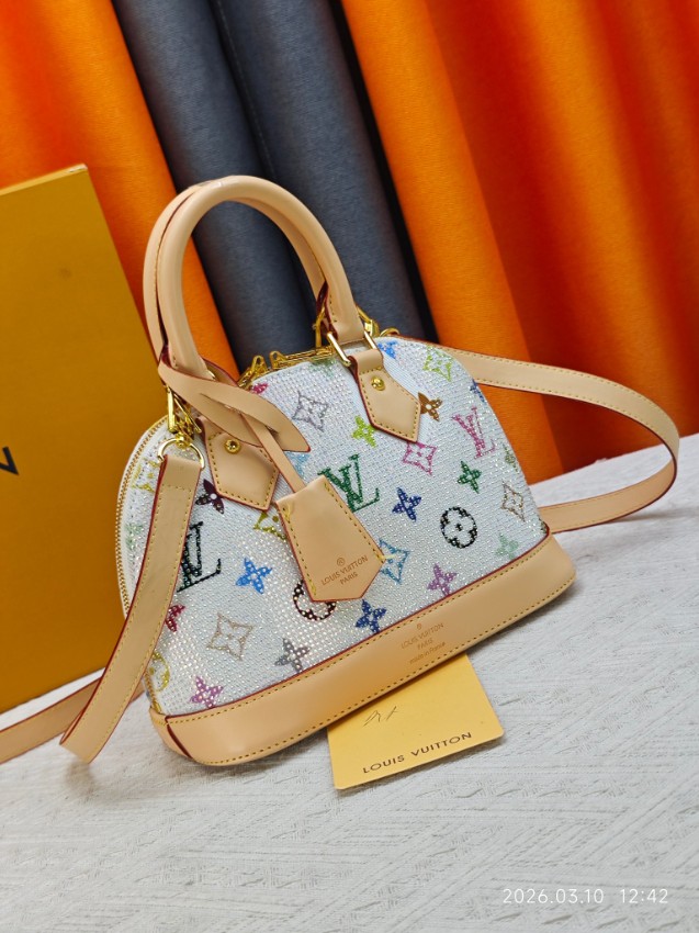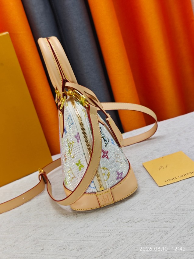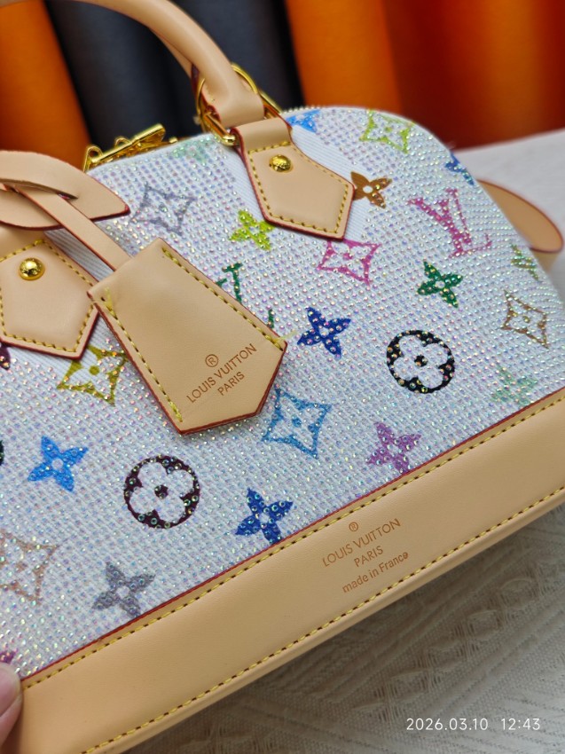 商品説明:ルイヴィトンの定番アルマシリーズをベースにしたスーパーコピー ミニボストンバッグは、ホワイトカラーのボディにマルチカラーモノグラムを配した華やかなデザインが特徴です。さらにビジュー装飾が全体にきらめきを添え、フェミニンかつラグジュアリーな印象を演出。ヌメ革のハンドルとゴールド金具が上品さを引き立て、細部まで丁寧に仕上げられています。取り外し可能なショルダーストラップ付きで、ハンドバッグとしても斜め掛けバッグとしても使える2WAY仕様。コンパクトながら収納力もあり、日常のお出かけや旅行時のサブバッグとしても活躍します。アルマシリーズならではのエレガントなフォルムを活かし、レディースミニバッグや斜め掛けバッグをお探しの方にもおすすめの一品です。