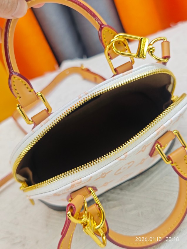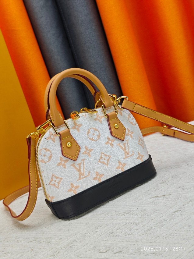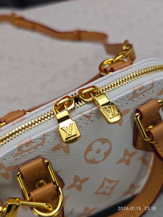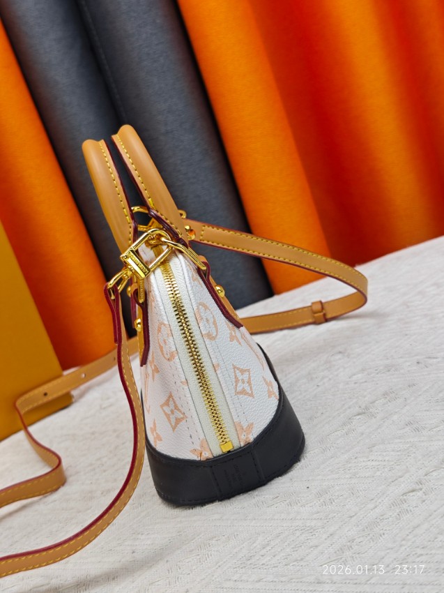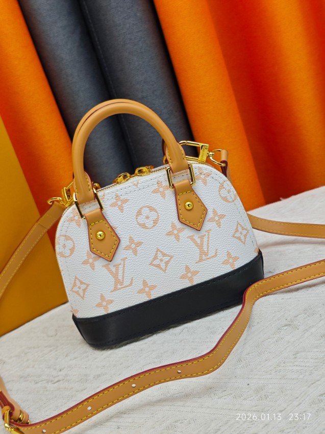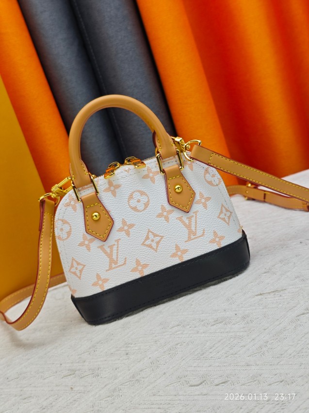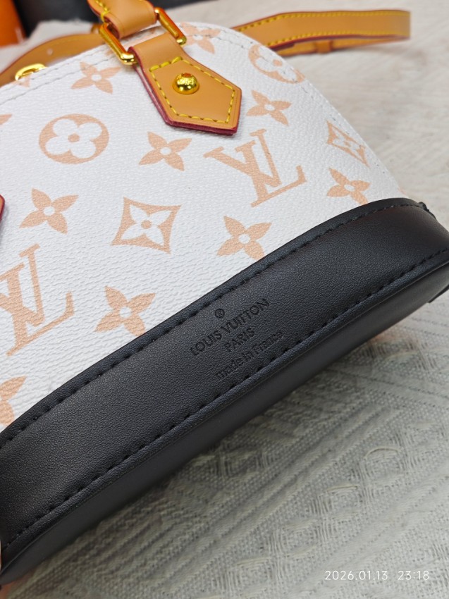 商品説明:ルイヴィトンの定番アルマシリーズをベースにしたハイブランド コンパクトバッグは、ホワイトのモノグラムキャンバスにブラックのバイカラー切替を施したスタイリッシュなデザインが特徴です。落ち着いた配色が洗練された印象を与え、どんなコーディネートにも合わせやすい万能な一品。ヌメ革ハンドルとゴールド金具の組み合わせが高級感を演出し、細部まで丁寧な仕上がりが魅力です。コンパクトなサイズながら、財布やスマートフォンなど日常の必需品をしっかり収納可能。ショルダーストラップ付きで斜め掛けにも対応し、シーンに合わせた使い分けができます。アルマシリーズらしいエレガントなフォルムを活かし、レディースバッグやミニバッグをお探しの方にもおすすめのアイテムです。