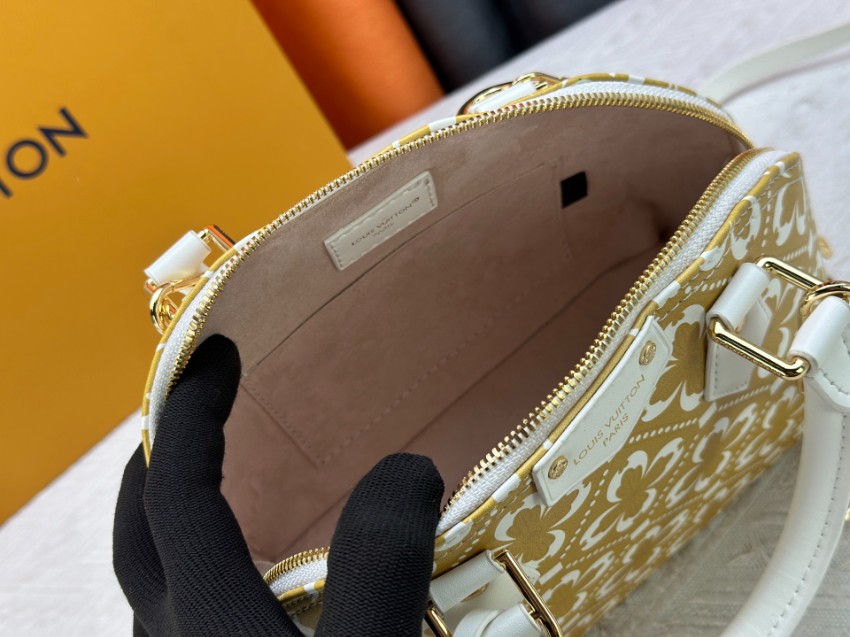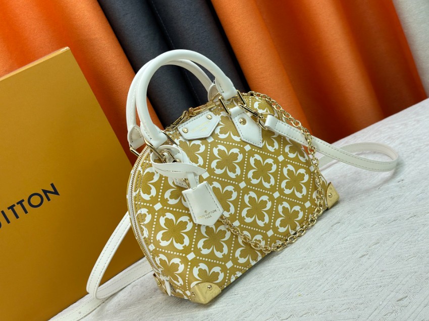 商品説明:ルイヴィトンの人気アルマシリーズをベースにしたコピー ミニバッグは、ゴールドとホワイトを基調としたフラワーパターンが目を引く華やかなデザイン。規則的に配置されたモチーフが上品な印象を与え、クラシカルでありながらも洗練された雰囲気を演出します。ホワイトレザーのハンドルとゴールドチェーンがアクセントとなり、全体に高級感をプラス。コンパクトなサイズ感ながら、財布やスマートフォンなど日常の必需品をしっかり収納できる実用性も魅力です。ショルダーストラップ付きで斜め掛けにも対応し、シーンに応じた使い分けが可能。アルマシリーズならではのエレガントなフォルムと華やかさを兼ね備えたレディースバッグとしておすすめの一品です。