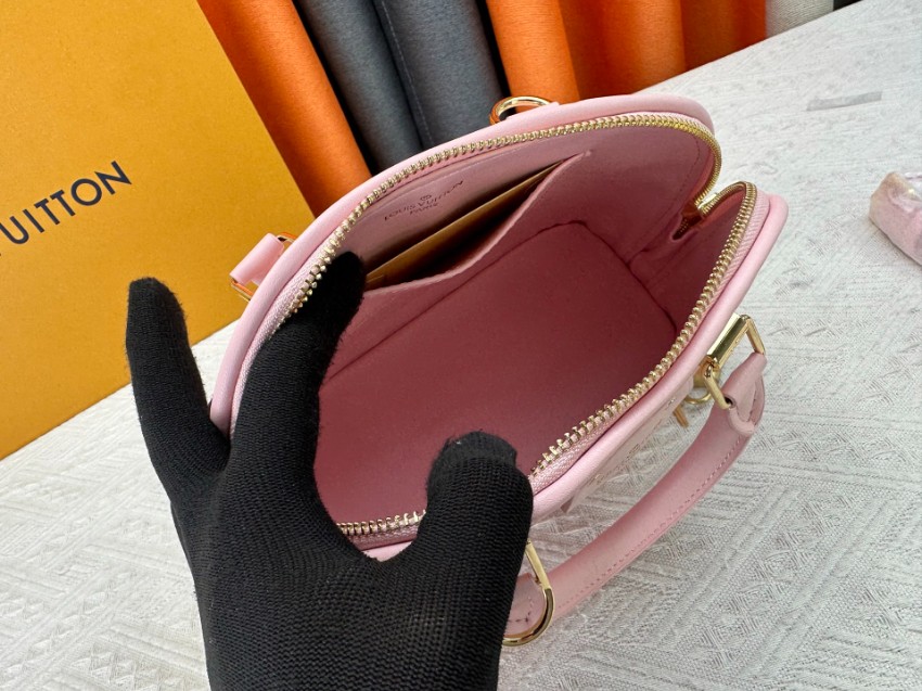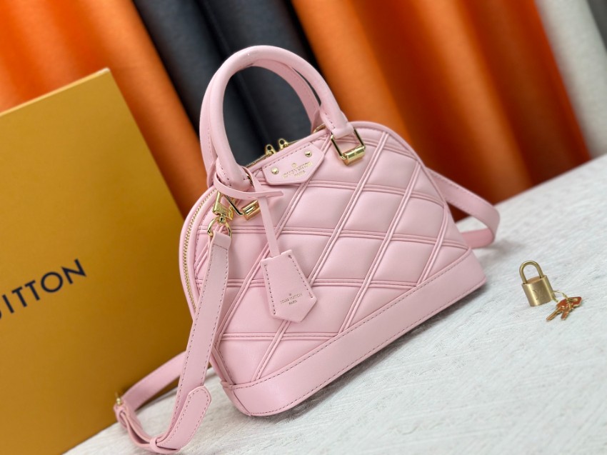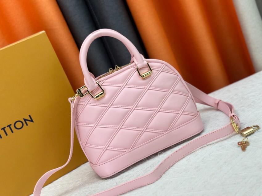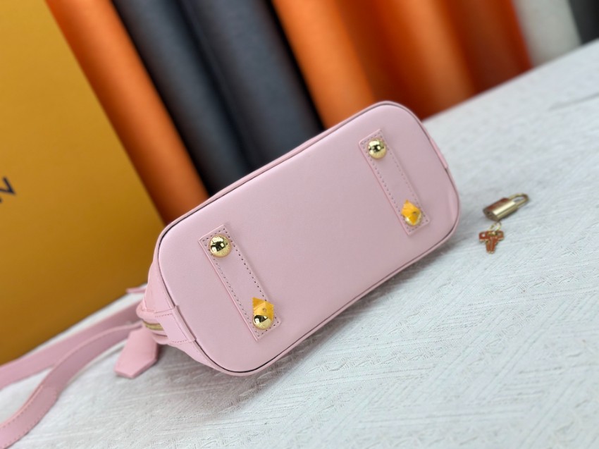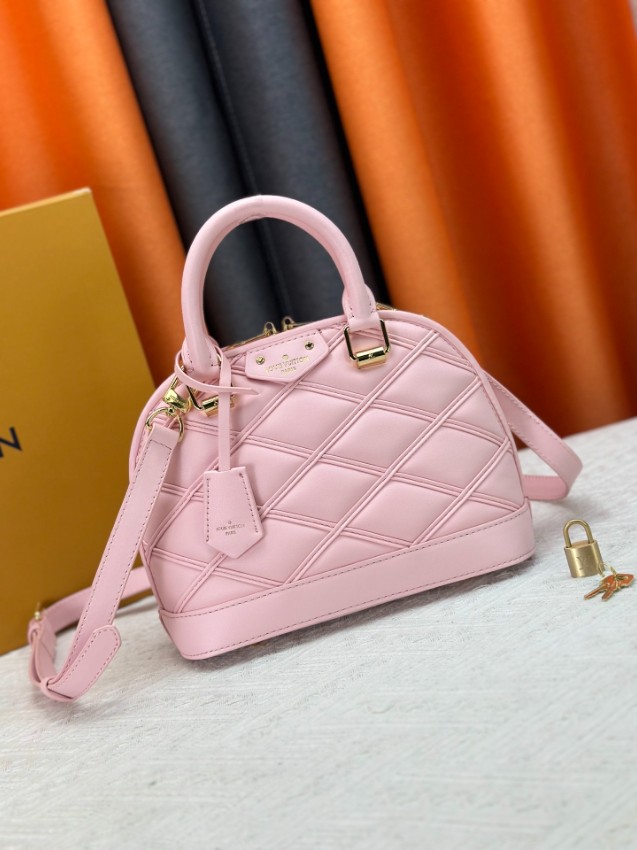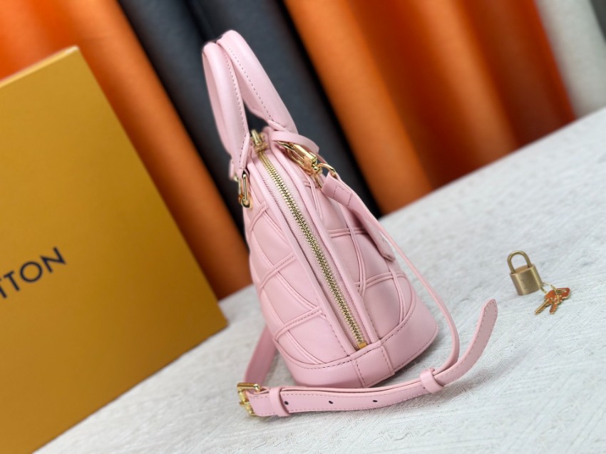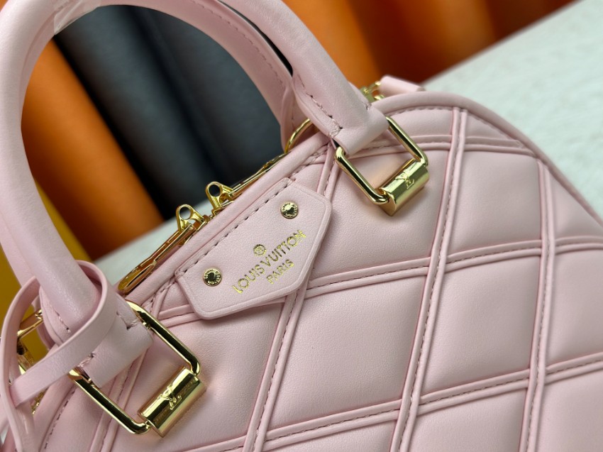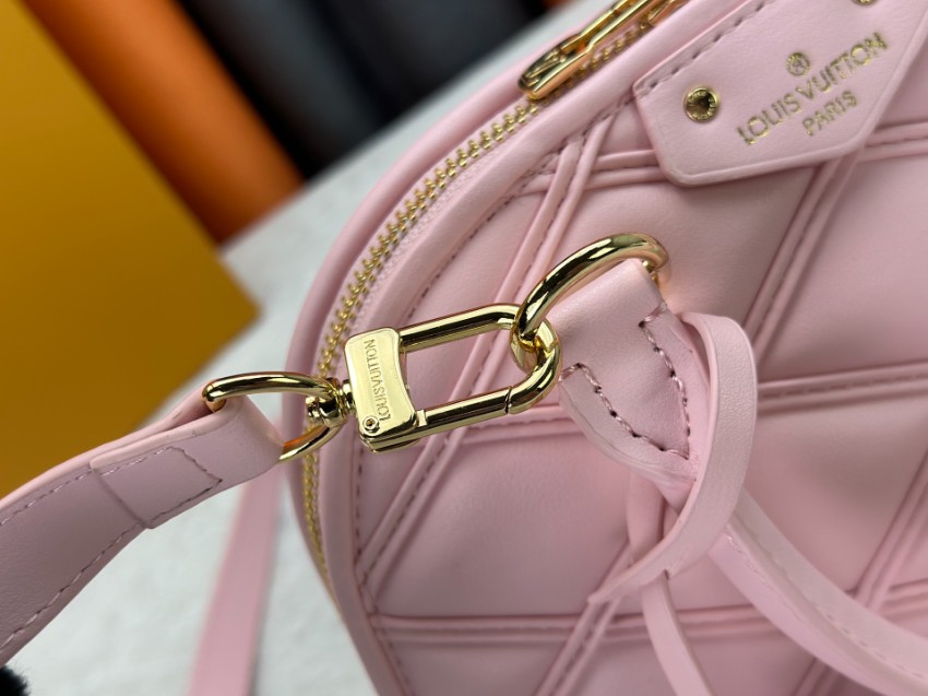 アルマをモチーフにしたn級品 ミニバッグは、フェミニンなカラーリングと洗練されたフォルムが魅力。優しいピンクに立体的なラインを施し、シンプルながらも華やかな印象を演出します。