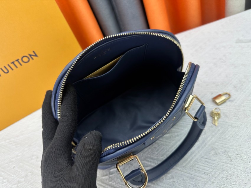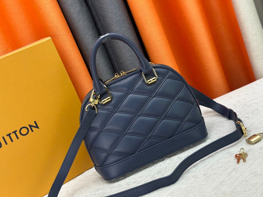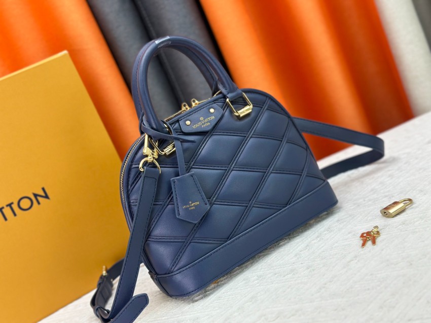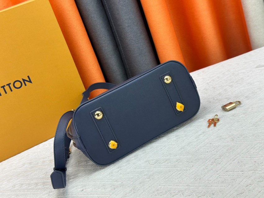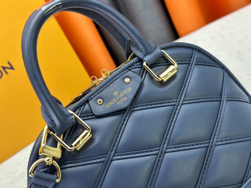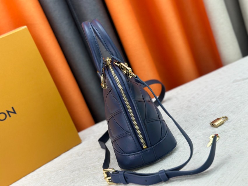 アルマをベースにした2WAYミニバッグは、クラシックとモダンを融合したデザインが特徴。ネイビーカラーに立体的なステッチを施し、落ち着きと高級感を両立しています。