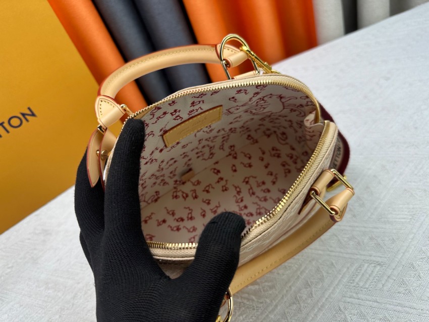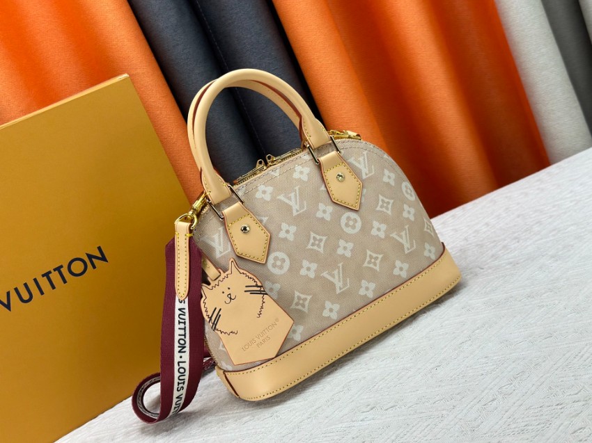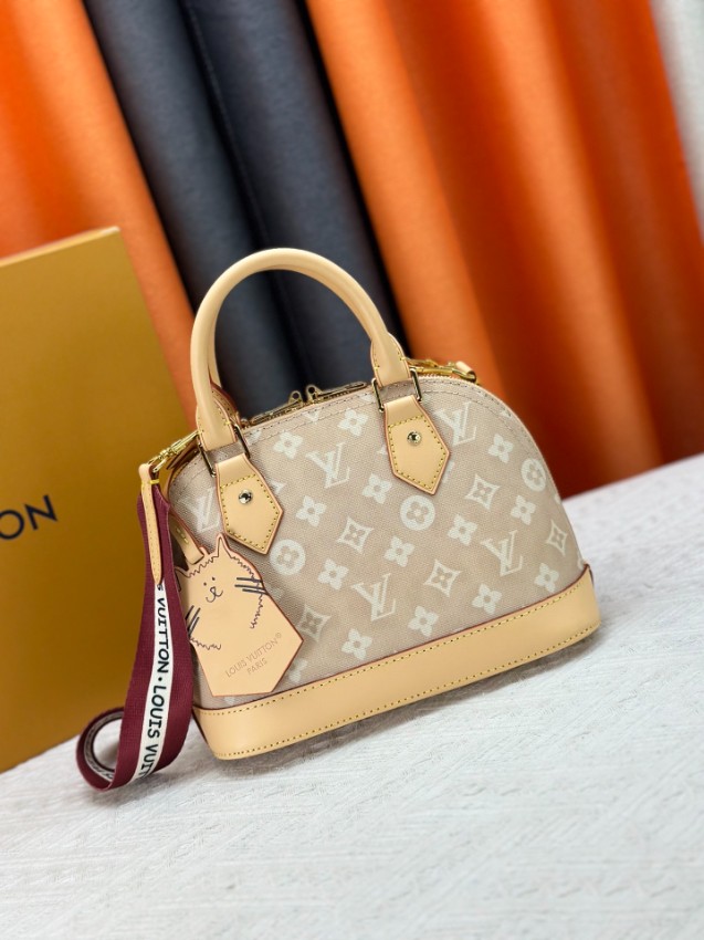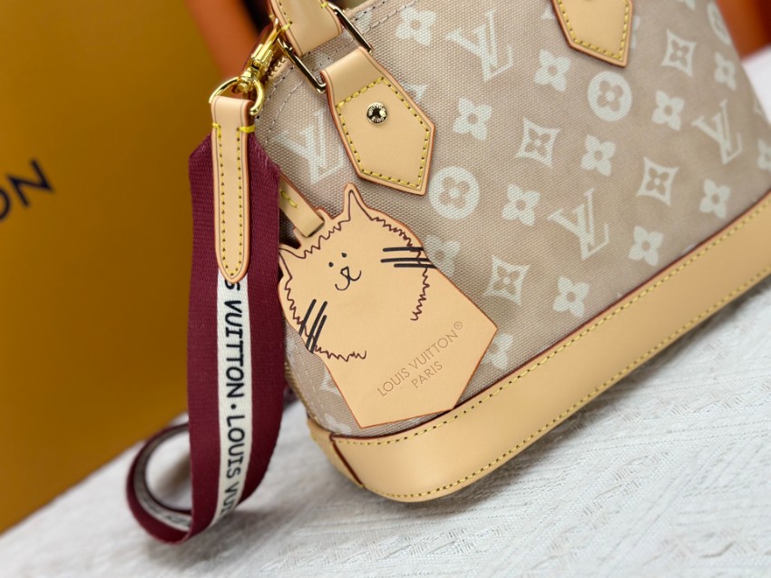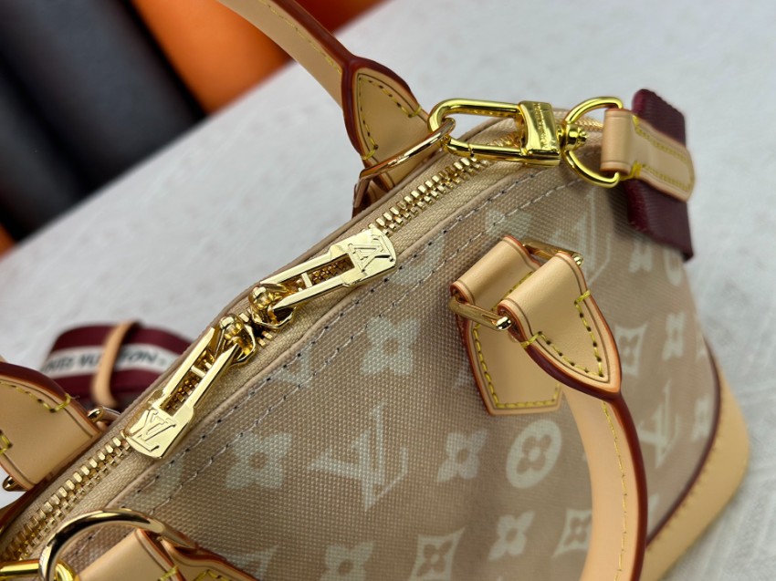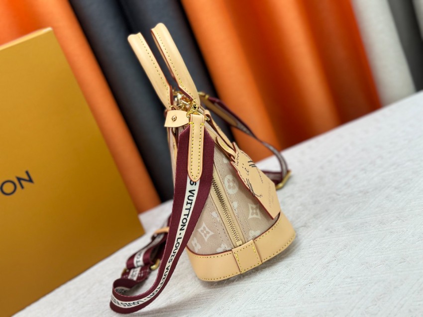 アルマをベースにしたミニハンドバッグは、ブランドらしいモノグラムデザインと柔らかなカラーリングが魅力。軽量で扱いやすく、日常使いに適した実用性を備えています。