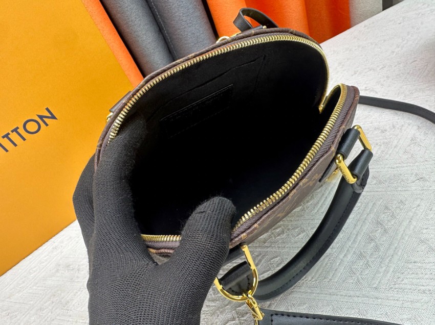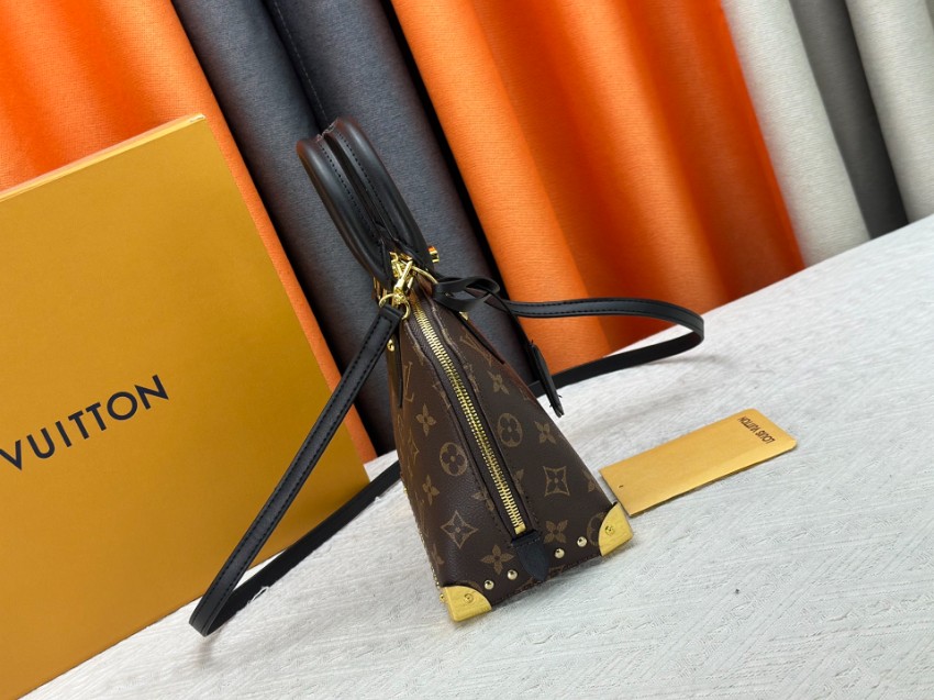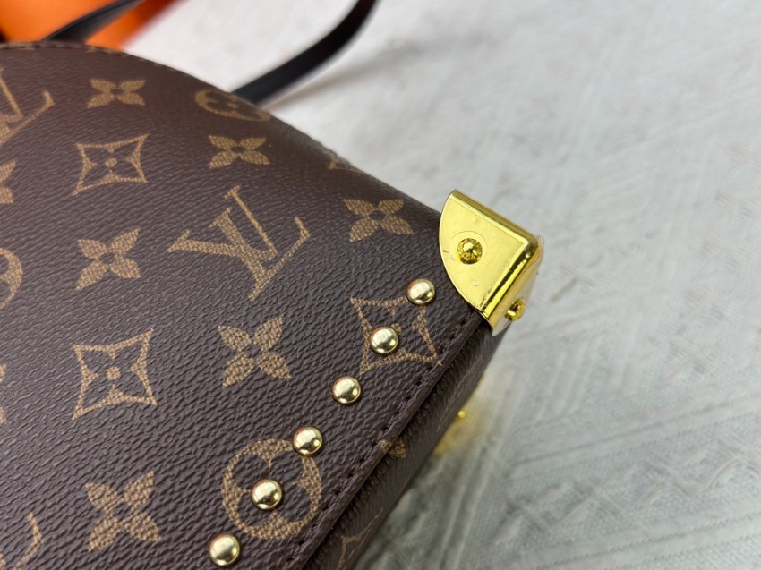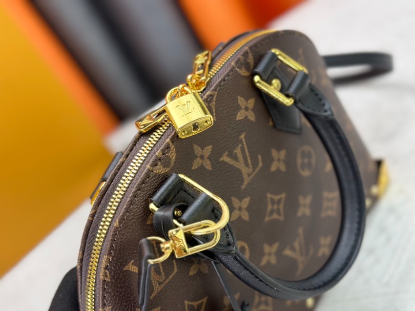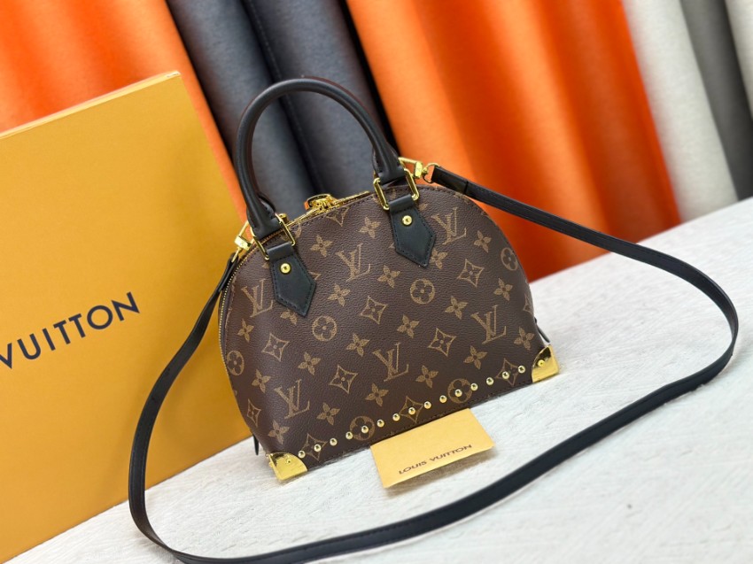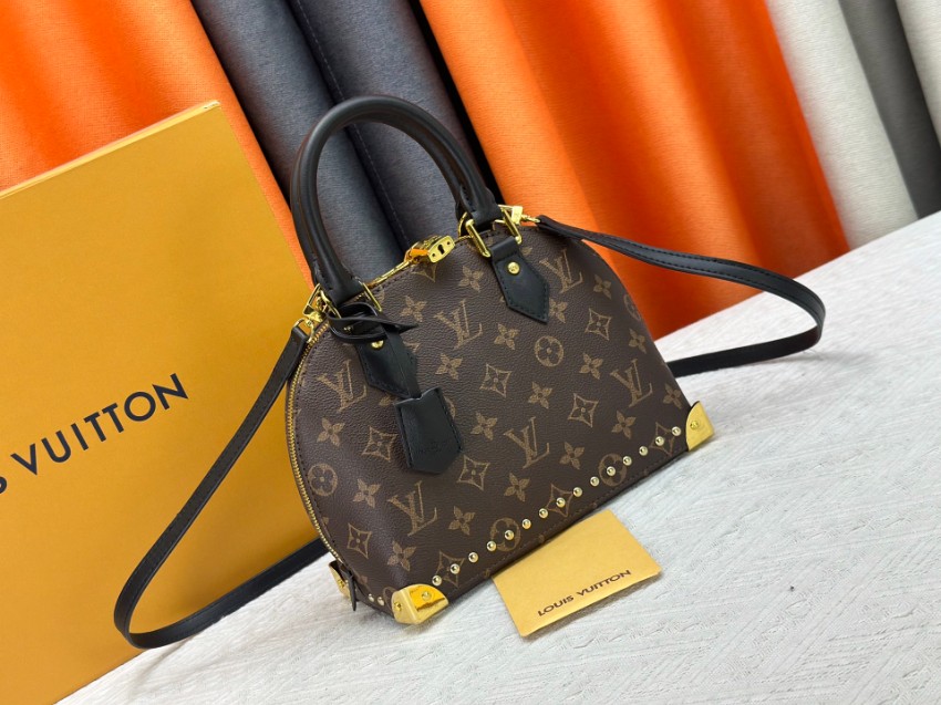 アルマをベースにしたスーパーコピー ミニボストンバッグは、ブランドを象徴するモノグラム柄にスタッズ装飾を取り入れた印象的なデザイン。ブラウンカラーにゴールドパーツを組み合わせ、上品さと華やかさを兼ね備えています。