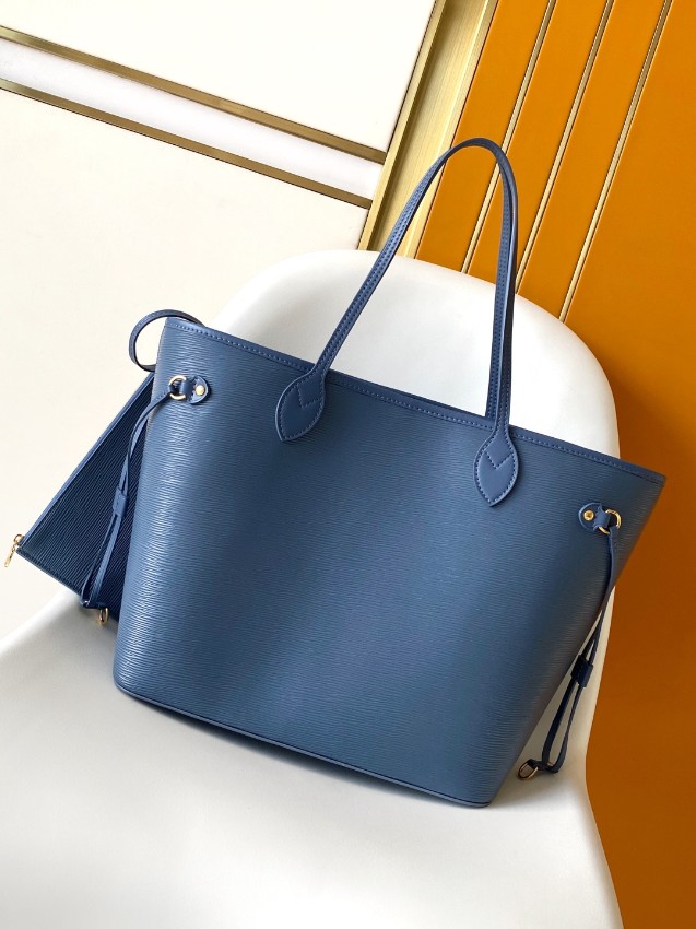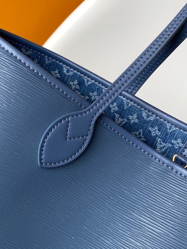 ルイヴィトンの人気シリーズ「ネヴァーフル」をベースにしたトートバッグは、上質なエピレザー風の質感と落ち着いたブルーカラーが特徴の洗練されたデザインです。シンプルでありながらも高級感を感じさせる仕上がりで、どんなスタイルにも自然に馴染みます。無駄のないミニマルなフォルムが大人の上品さを引き立て、長く愛用できる魅力を持っています。