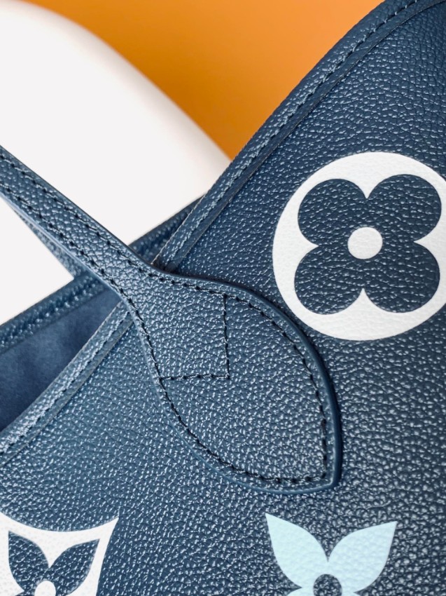 ルイヴィトンの人気シリーズ「ネヴァーフル」をベースにしたn級品モデル。深みのあるネイビーカラーに、グラデーションのようなブルーモノグラムを配置し、モダンで洗練された印象に仕上げています。大胆な配色でありながら上品さも兼ね備え、コーディネートの主役としても映えるデザインです。