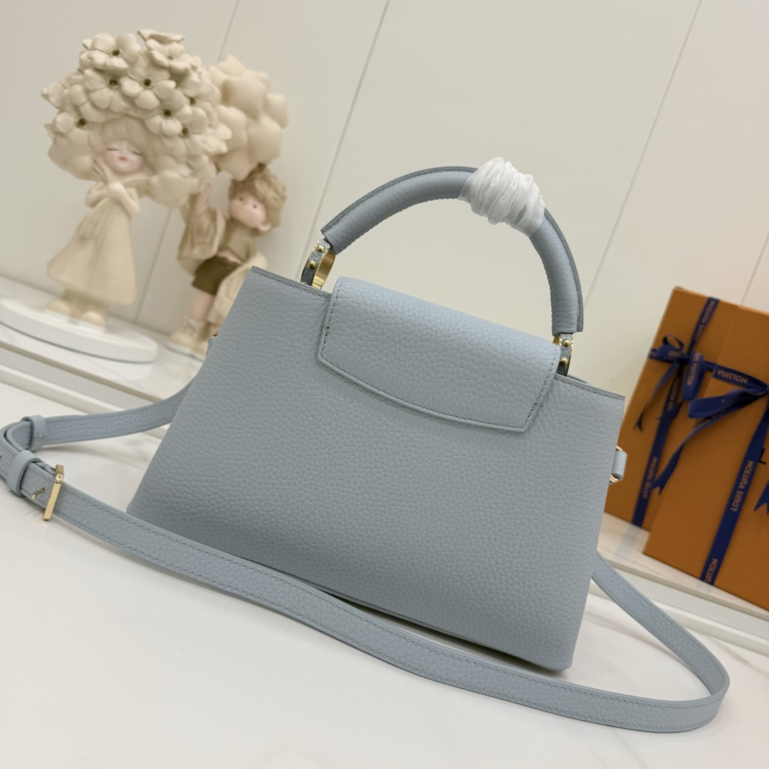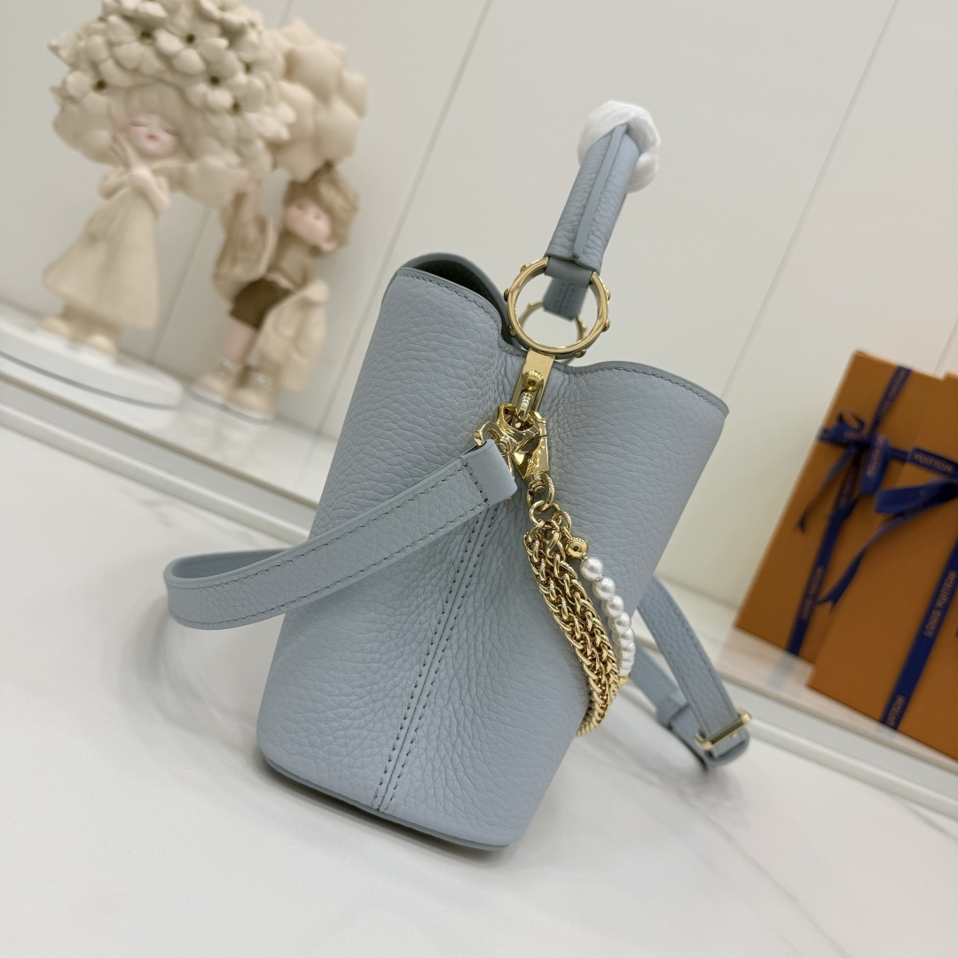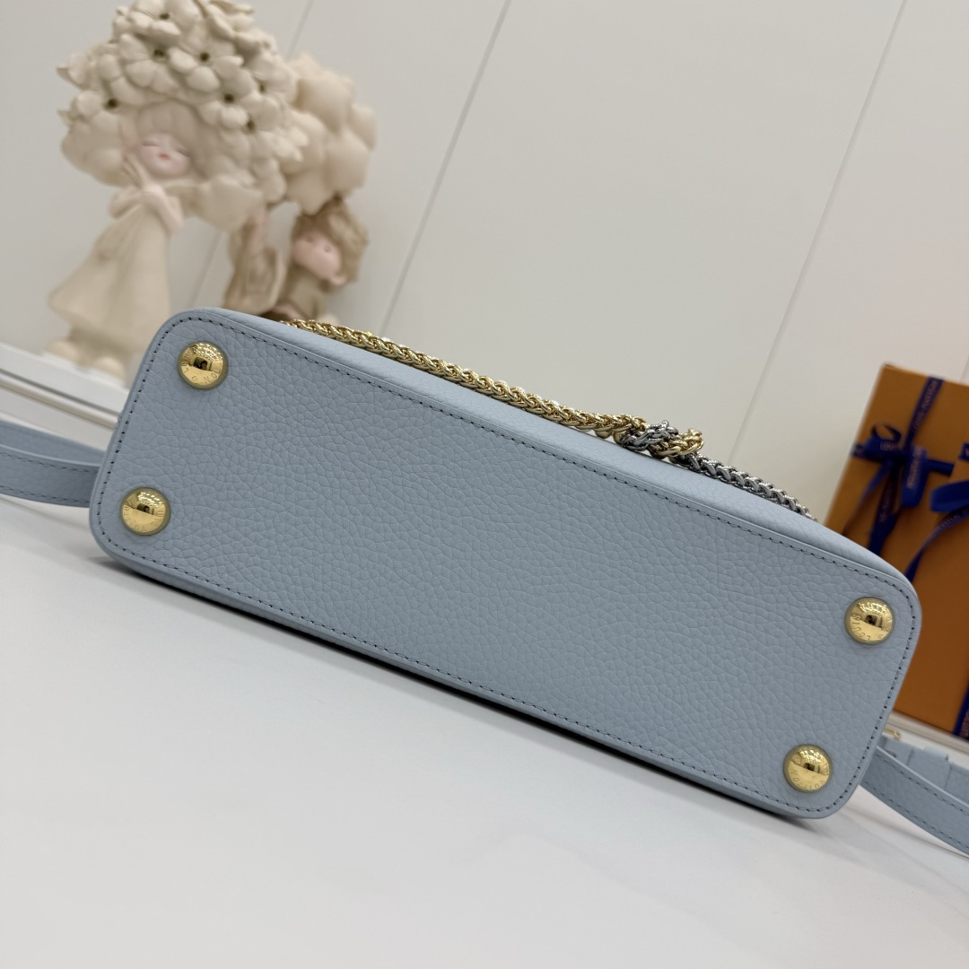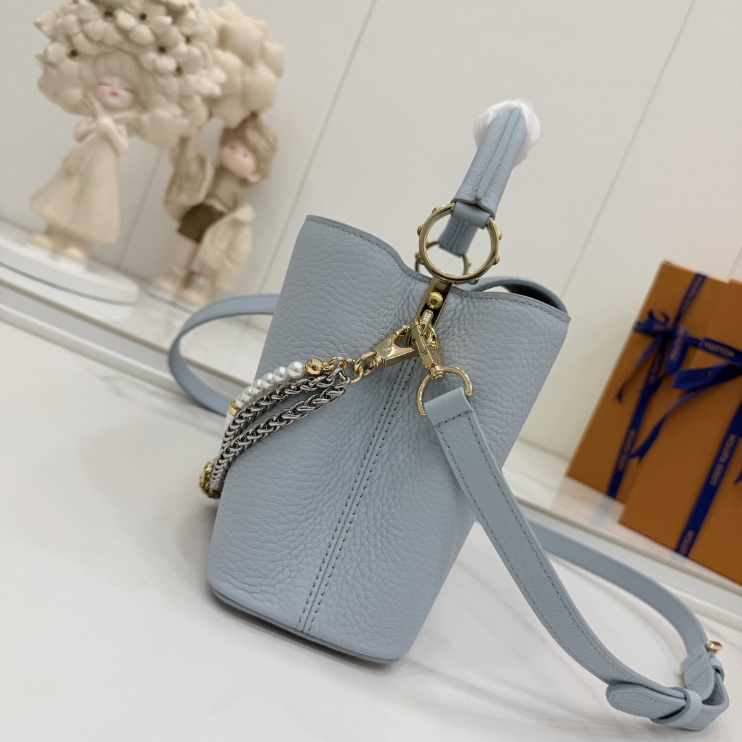 商品説明:ルイヴィトン カプシーヌシリーズのデザインを取り入れたハイブランドスタイルのミニバッグ。柔らかなシボ感のあるレザー風素材を使用し、手触りの良さと高級感をしっかり再現しています。フロントのLVロゴ金具に加え、ゴールドとシルバーのチェーン、パール装飾が絶妙に組み合わされ、シンプルながらも印象的なデザインに仕上がっています。取り外し可能なストラップ付きで、ハンドバッグとショルダーバッグの2WAYで使用可能。コンパクトながらスマートフォンや小物類をしっかり収納でき、日常使いからお出かけ、パーティーシーンまで幅広く対応します。カプシーヌ ハイブランドテイストの魅力を楽しめる、今注目のアイテムです。