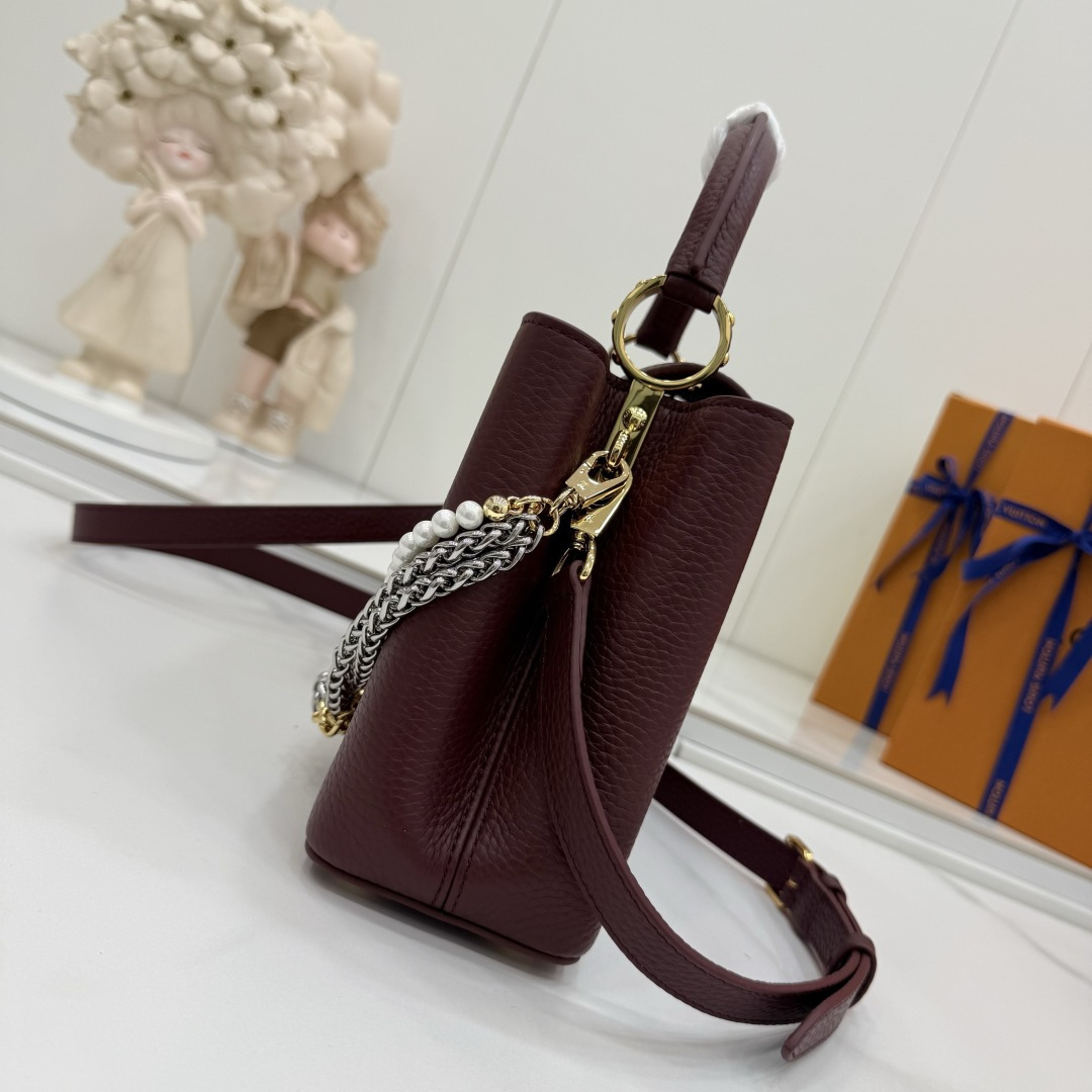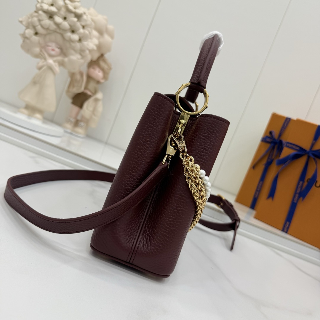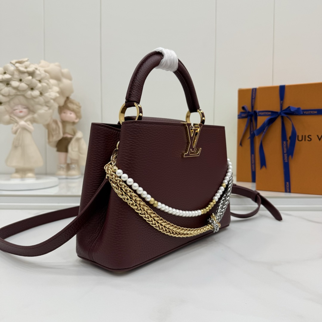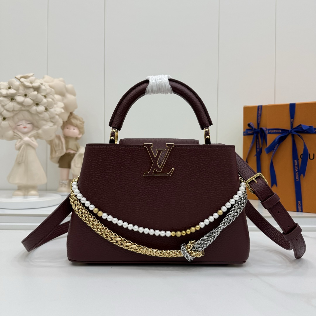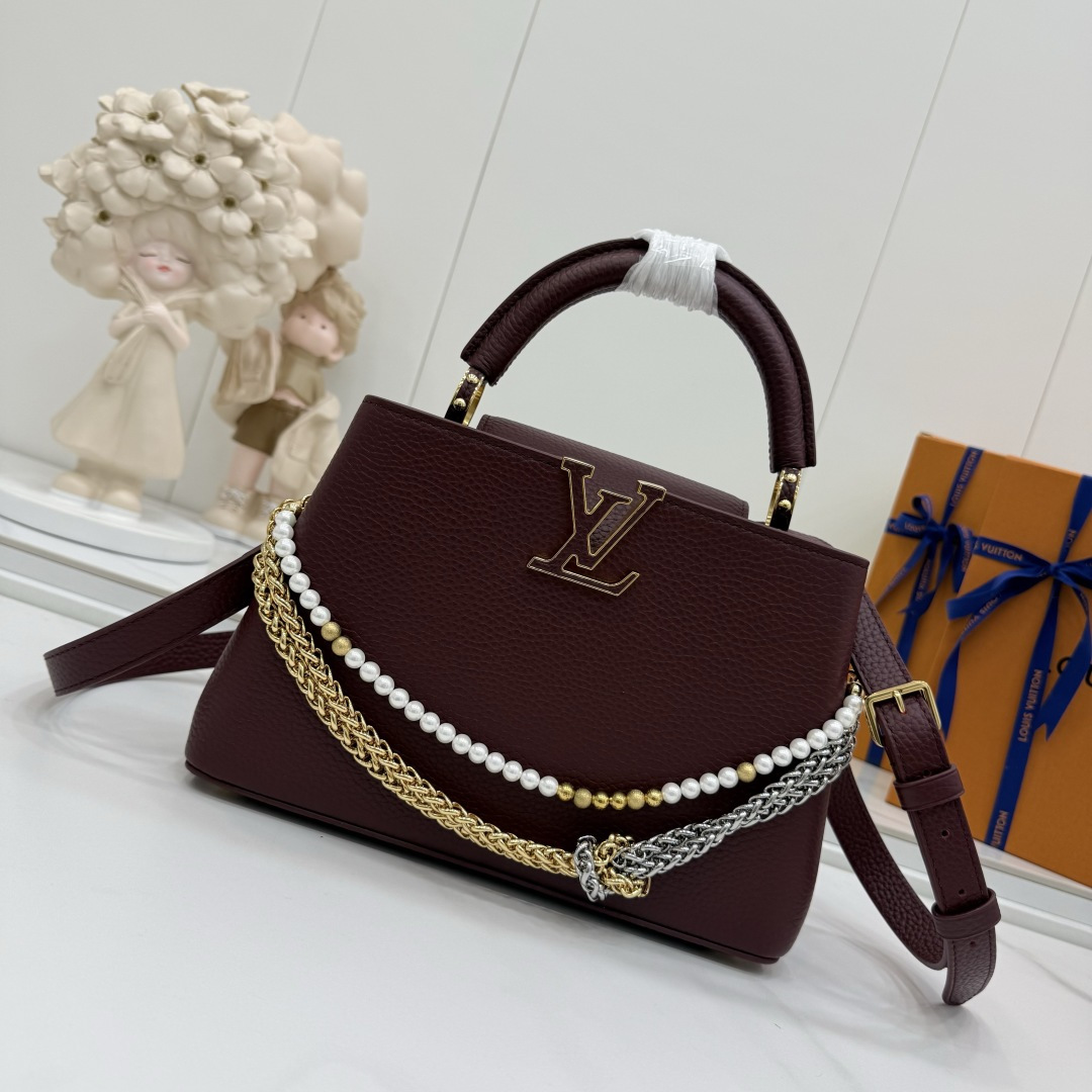 商品説明:ルイヴィトン カプシーヌシリーズの魅力を表現したスーパーコピー 届く仕様のミニバッグ。しっとりとした質感のシボ加工レザー風素材を使用し、落ち着いた高級感を演出します。フロントのLVロゴ金具がシンプルなデザインにアクセントを加え、さらにゴールド・シルバーのチェーンとパール装飾が華やかさを引き立てます。取り外し可能なストラップ付きで、ハンドバッグとショルダーバッグの2WAYで使用可能。スマートフォンやミニウォレットなどの必需品をすっきり収納でき、日常使いからパーティー、フォーマルシーンまで幅広く対応します。カプシーヌ スーパーコピー 届くとして、デザイン性と実用性を兼ね備えた売れ筋アイテムです。