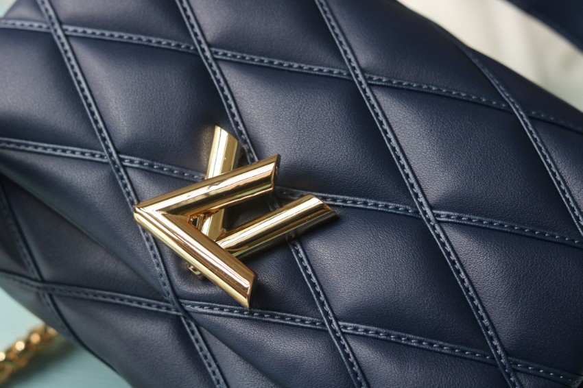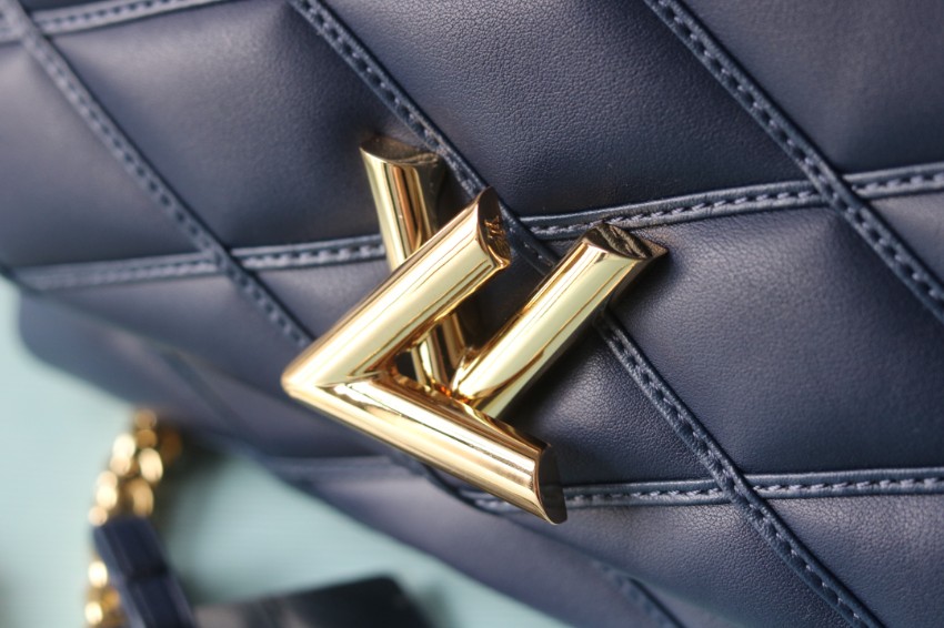 ルイヴィトンの象徴的な「ツイスト」シリーズをベースにした2WAYミニバッグは、クラシカルとモダンが融合したデザインが魅力です。立体的なキルティング風ステッチがバッグ全体に施され、シンプルながらも存在感のある仕上がりに。落ち着いたネイビーカラーは大人のコーディネートに自然に溶け込み、上品な印象を引き立てます。