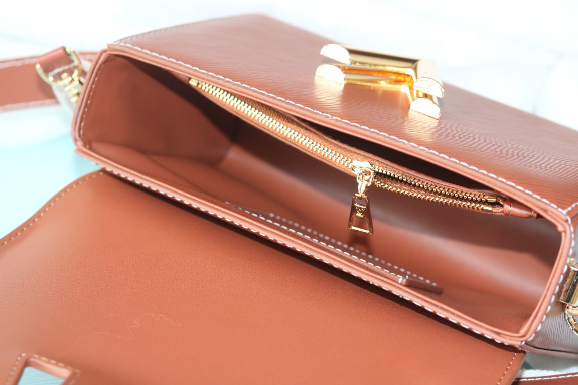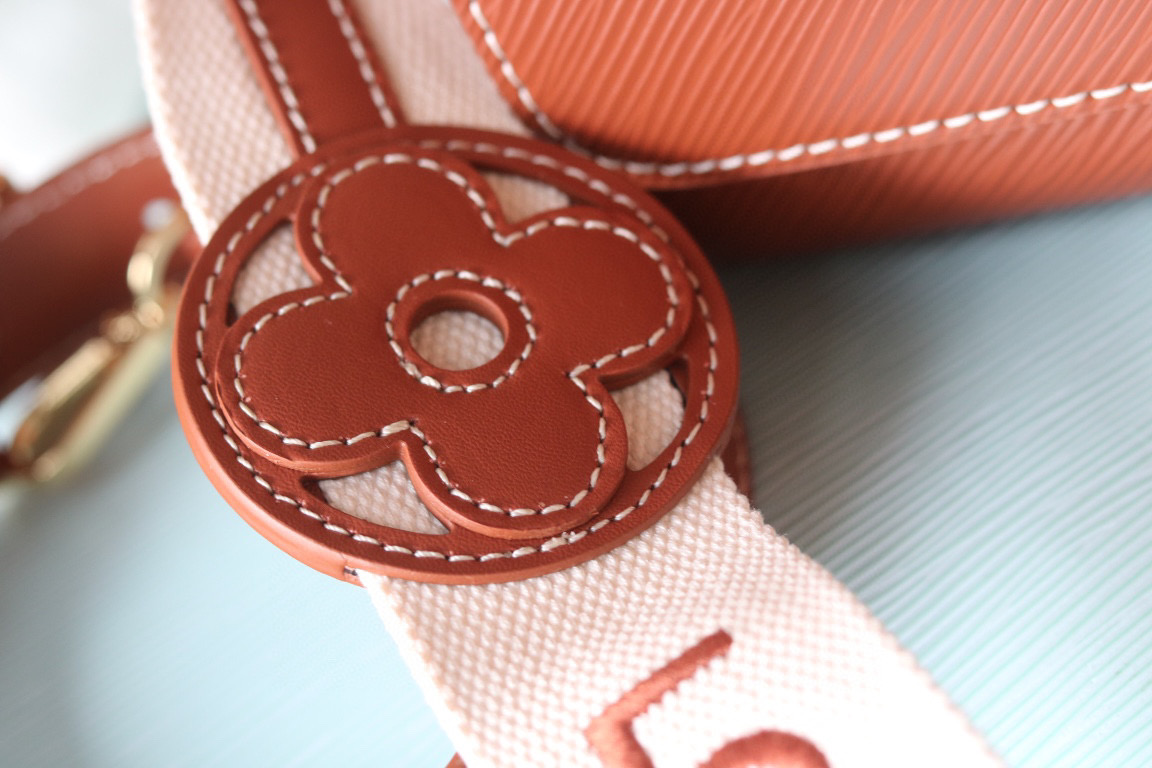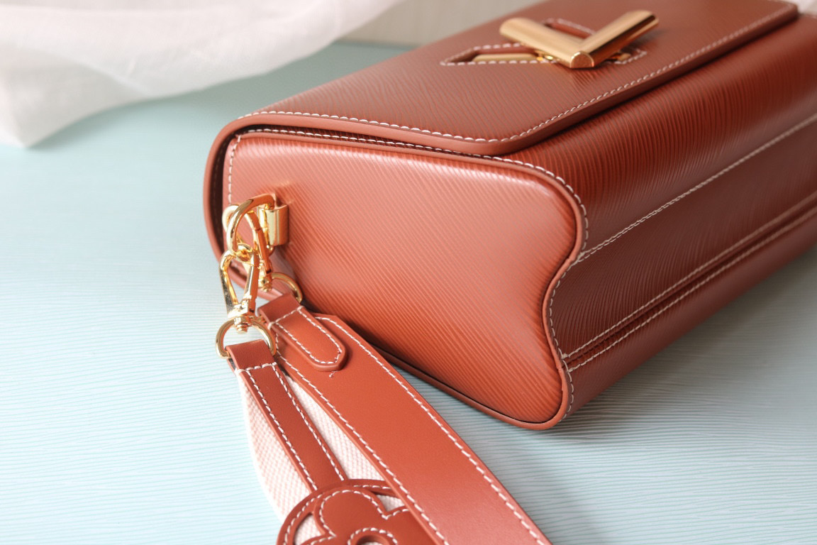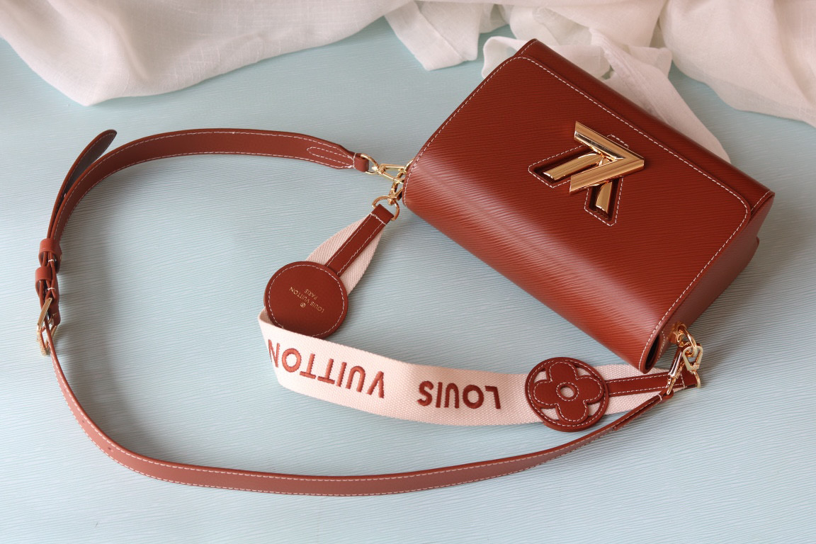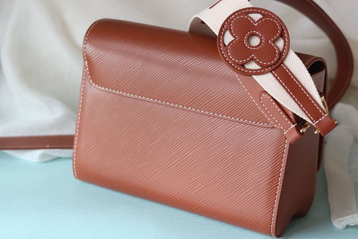 ルイヴィトンの人気ライン「ツイスト」をベースにしたショルダーバッグは、温かみのあるブラウンカラーとロゴ入りストラップが特徴的なデザインです。フロントのツイスト式ロゴ金具がアクセントとなり、シンプルながらもブランドらしい存在感を演出。ミニマルなフォルムと上品な色合いが、さまざまなスタイリングに自然に馴染みます。