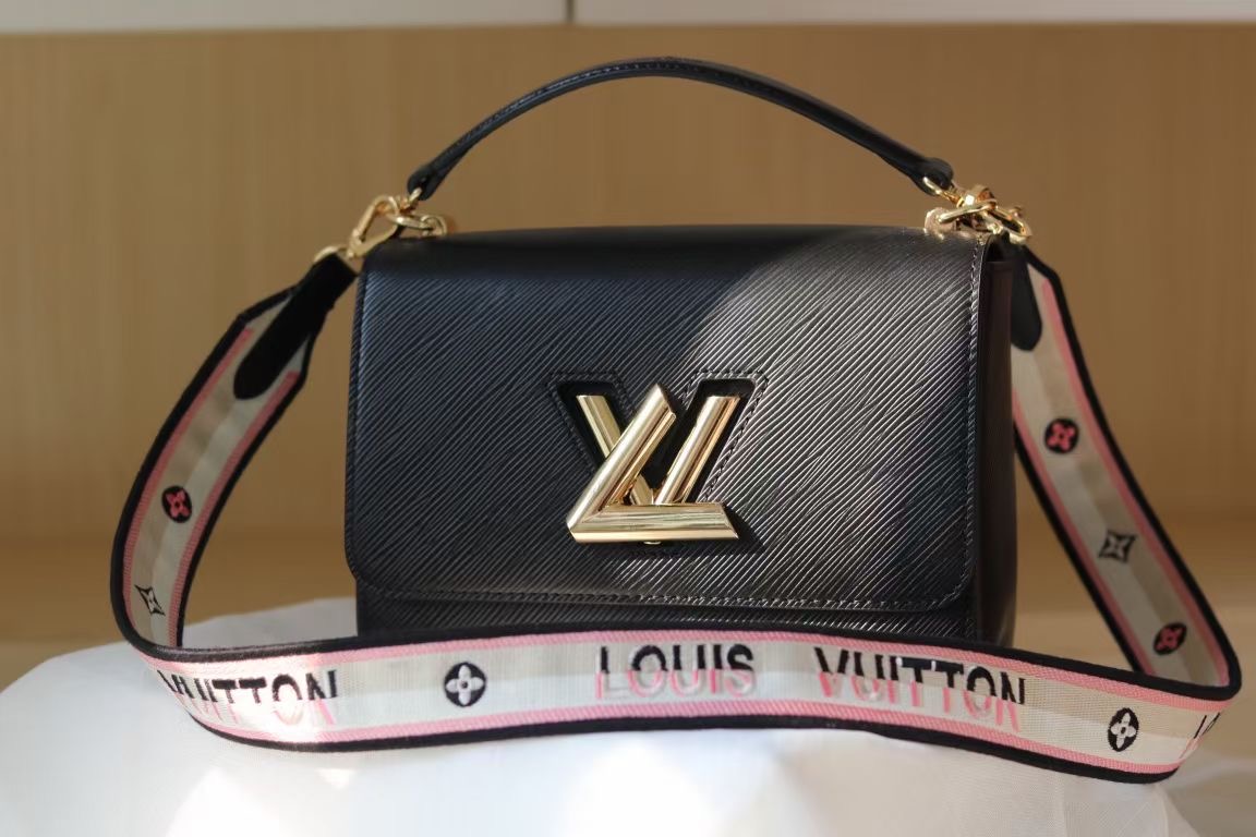 ルイヴィトンの人気ライン「ツイスト」をベースにしたショルダーバッグは、シンプルでありながら存在感のあるデザインが魅力です。ブラックカラーの落ち着いた雰囲気に、フロントのツイスト式ロゴ金具がアクセントとなり、上品で洗練された印象を演出します。付属のロゴ入りストラップがスポーティな要素をプラスし、現代的なスタイルに仕上がっています。