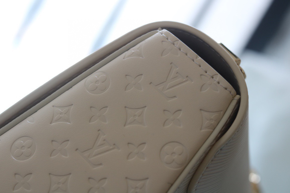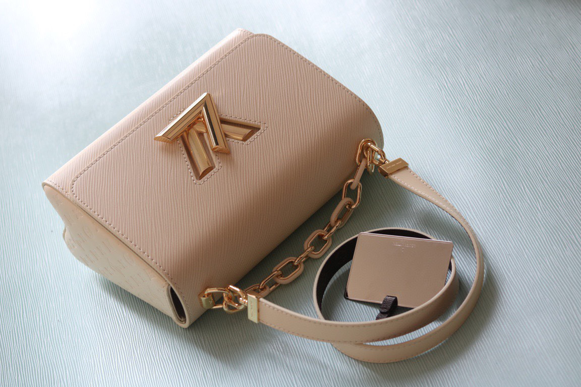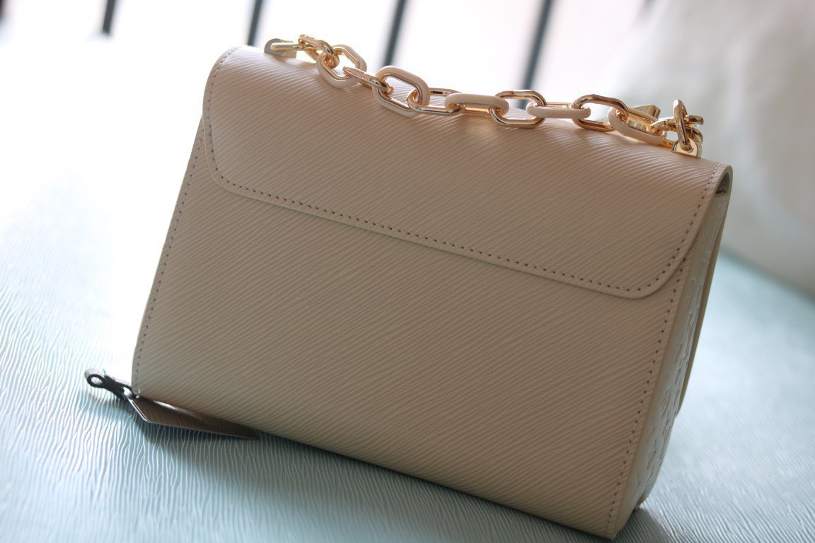 ルイヴィトンの人気シリーズであるツイストラインをベースにデザインされた並行輸入品のミニバッグ。繊細なエピ調の型押しレザーに柔らかなベージュカラーを組み合わせ、上品で落ち着いた印象を引き立てます。フロントには存在感あるLVツイスト金具を配置し、シンプルながらも華やかさを演出。ゴールドチェーンストラップがアクセントとなり、肩掛けや斜め掛けスタイルにも対応可能です。コンパクトながらスマートフォンやミニウォレットなど必需品をしっかり収納でき、実用性も十分。カジュアルからきれいめスタイルまで幅広く合わせやすく、デイリーからお出かけまで活躍します。ツイストならではのエレガントな雰囲気を気軽に取り入れられるおすすめバッグです。