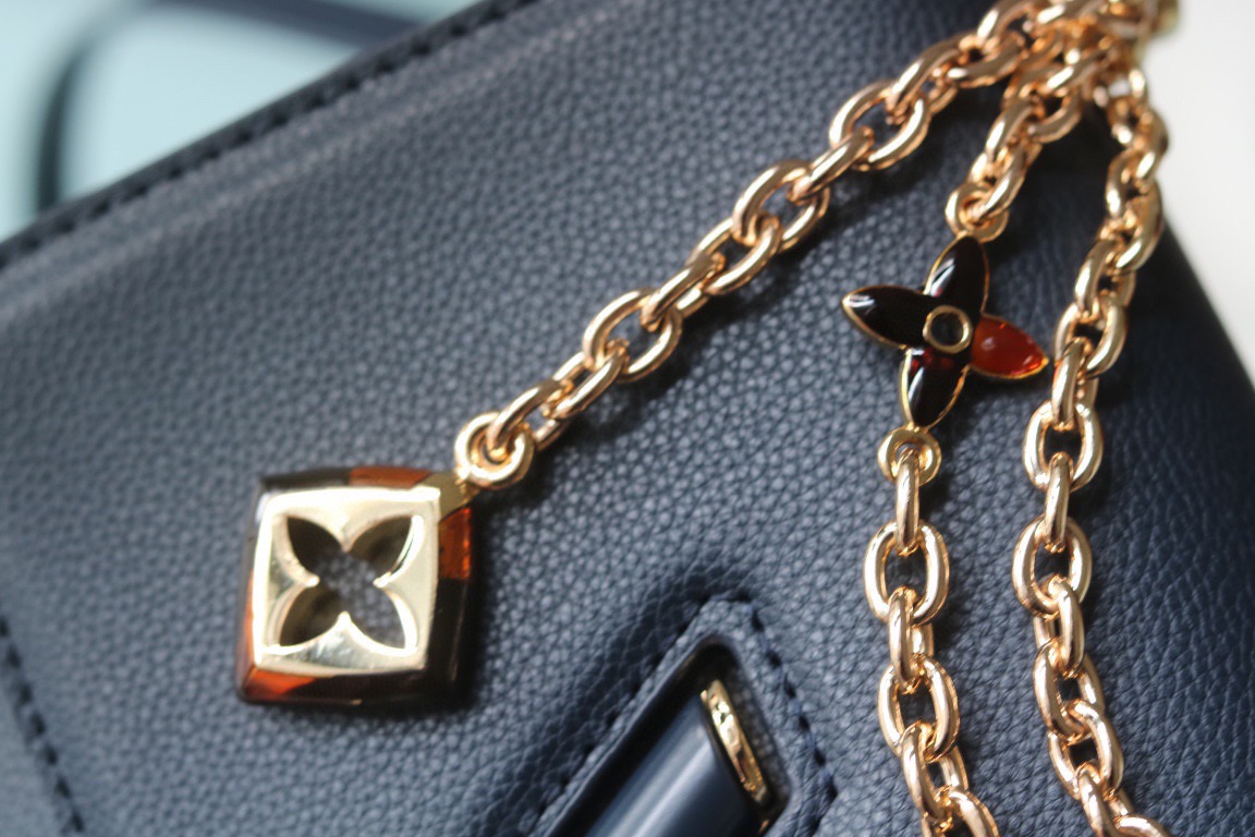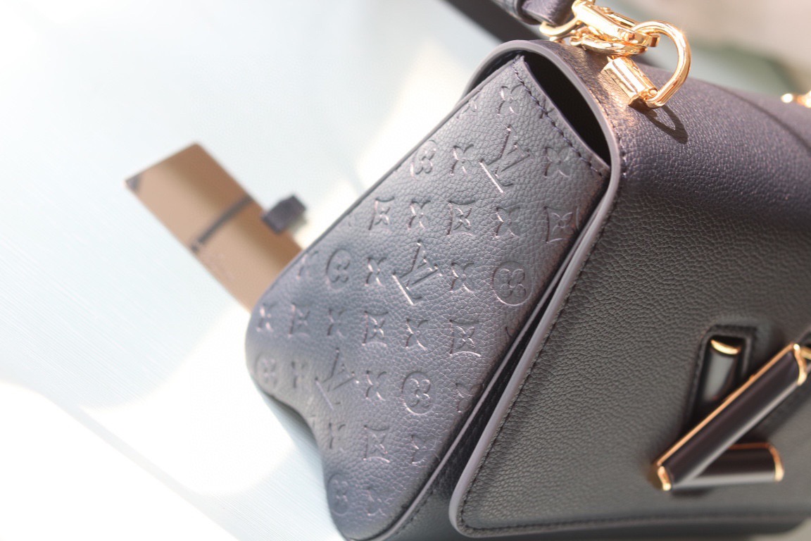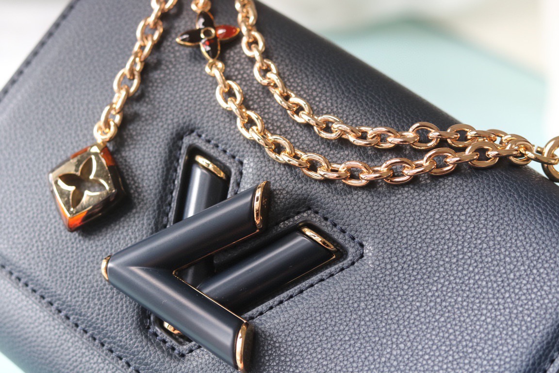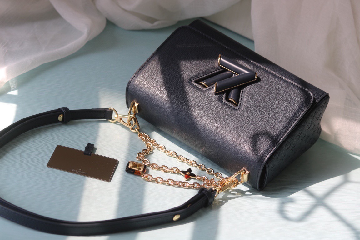 ルイヴィトンの象徴的なツイストシリーズをベースにデザインされたコピーのミニバッグ。高級感あるグレインレザー調の質感に落ち着いたブラックカラーを採用し、大人の洗練された雰囲気を演出します。フロントには存在感のあるLVツイスト金具を配置し、さらに二重構造のゴールドチェーンが華やかなアクセントに。シンプルなデザインの中に個性と上品さを兼ね備えた仕上がりです。ショルダーストラップ付きで肩掛けや斜め掛けの2WAYに対応し、シーンに応じた使い分けが可能。コンパクトながらスマートフォンやミニウォレットなどの必需品をしっかり収納でき、実用性も十分です。カジュアルからきれいめスタイルまで幅広くマッチし、ツイストならではの魅力を気軽に楽しめるおすすめバッグです。