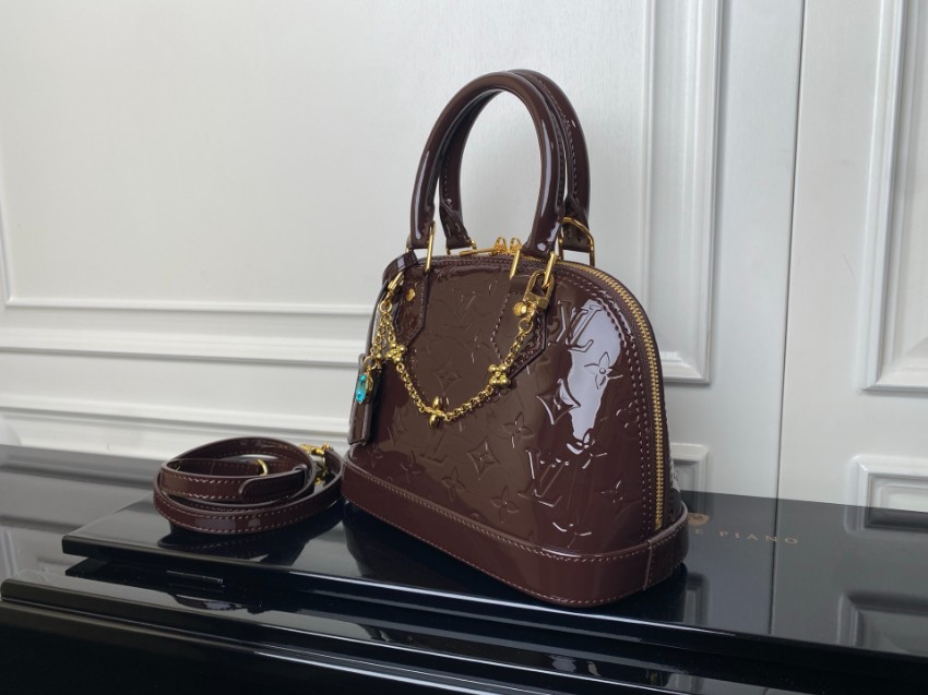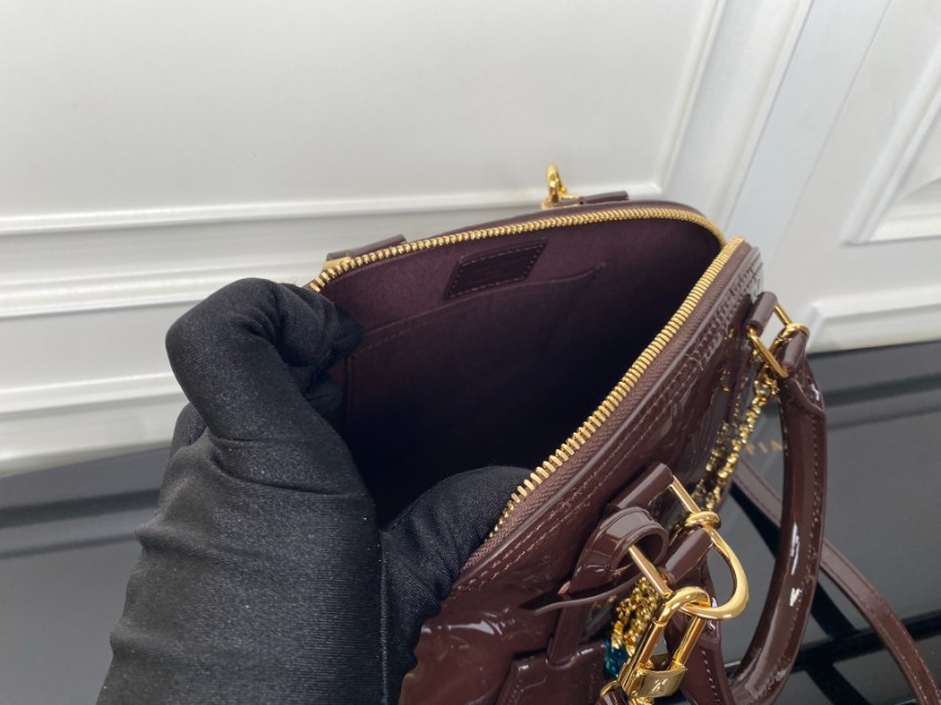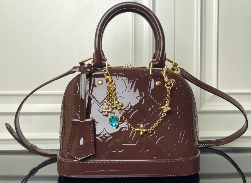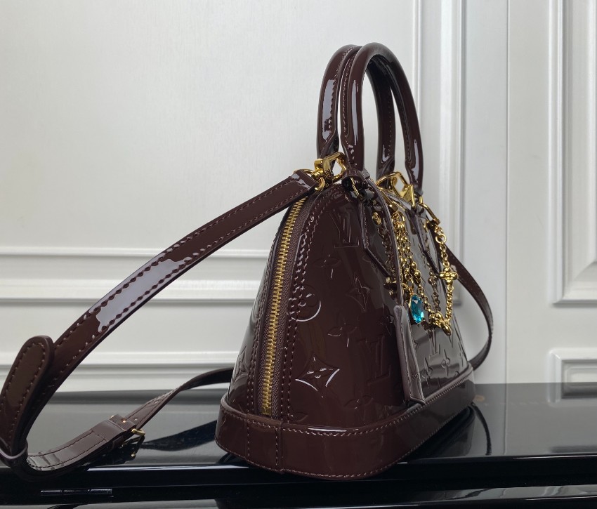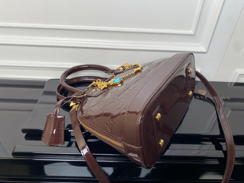 商品説明:ルイヴィトンのナノスピーディをベースに、艶やかなヴェルニエナメル素材を使用したラグジュアリーなミニボストンバッグです。光沢のあるブラウンカラーにモノグラムの型押しが美しく映え、華やかで洗練された印象を与えます。フロントにあしらわれたゴールドチェーンとジュエルチャームがアクセントとなり、エレガントな雰囲気を引き立てます。コンパクトながら必要な小物をしっかり収納できるサイズ感で、パーティーシーンやお出かけスタイルにも最適。ショルダーストラップ付きで2WAY使用が可能なのも魅力です。丁寧な仕上げによるルイヴィトン スーパーコピー 届く仕様で、ナノスピーディの魅力を存分に楽しめる高級感あふれる一品です。