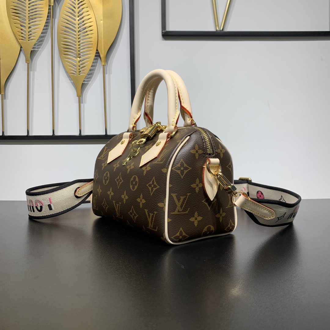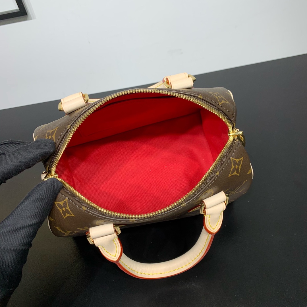 ルイヴィトン ナノスピーディのクラシックなモノグラムデザインに、ロゴ入りジャカードストラップを組み合わせたn級品モデル。ブラウンのモノグラムキャンバスにヌメ革ハンドルを合わせることで、ブランドらしい上品さと高級感をしっかり再現しています。付属の幅広ストラップは肩への負担を軽減しつつ、コーディネートのアクセントとしても存在感を発揮。ミニボストンバッグとしてコンパクトながら、スマートフォンやミニウォレット、キーケースなど日常必需品をしっかり収納できる実用性も魅力です。手持ち・肩掛けの2WAY仕様でシーンに応じた使い分けが可能。n級品ならではの丁寧な作り込みで、ルイヴィトンの魅力を気軽に楽しめるナノスピーディです。