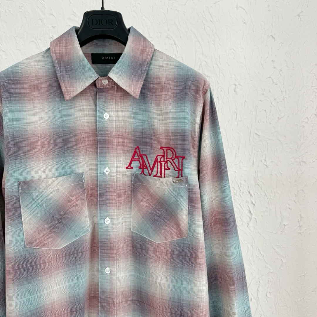 AMI PARIS(アミ・パリス)コピー刺しゅうチェック長袖シャツ通販