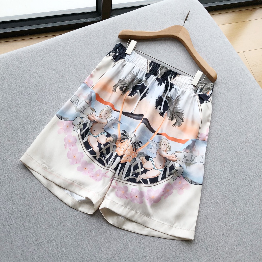 アミパリス n級品 アイキャッチ シルク プリントカジュアルショートパンツ