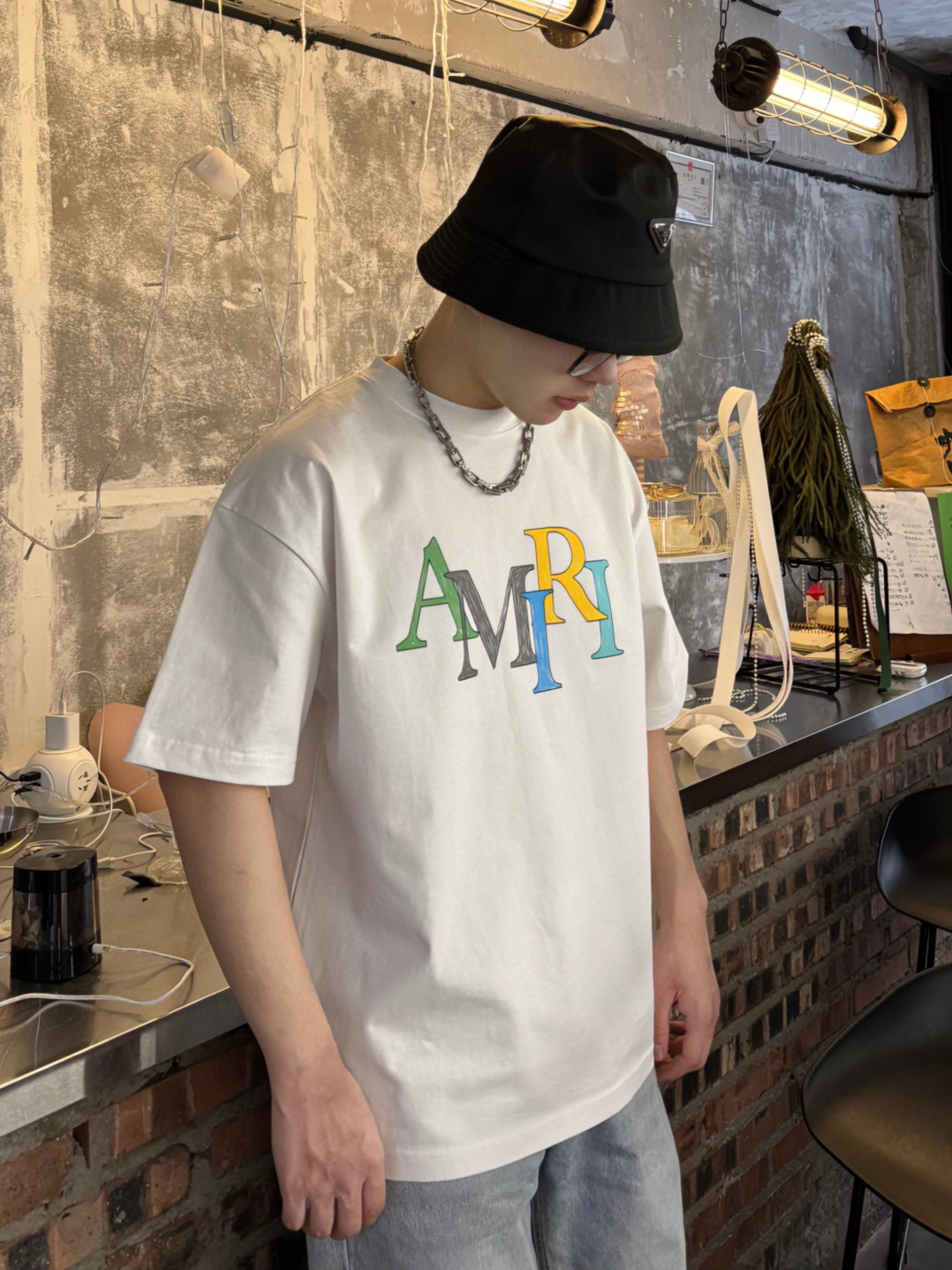 AMIRI(アミリ)2024春夏新作偽物ラウンドネック半袖Tシャツ純綿280g男女兼用
