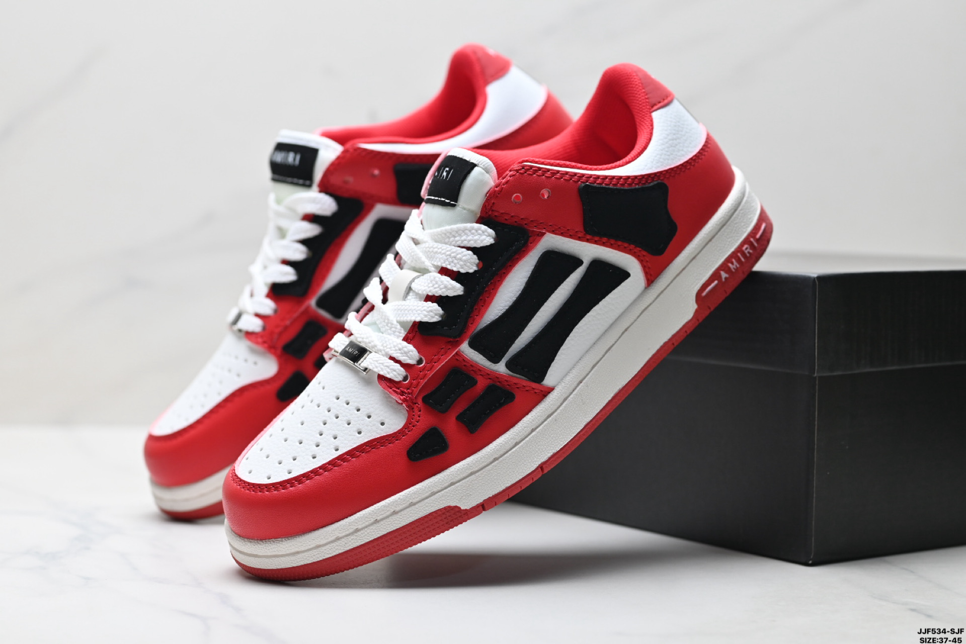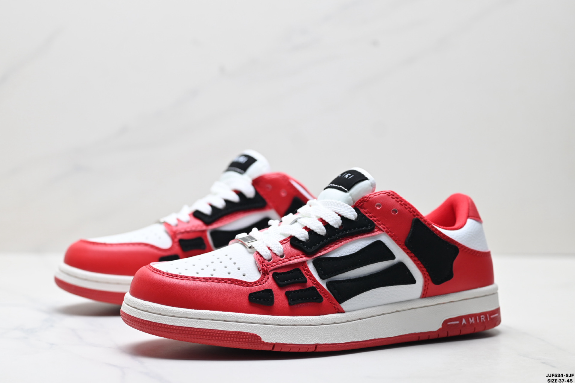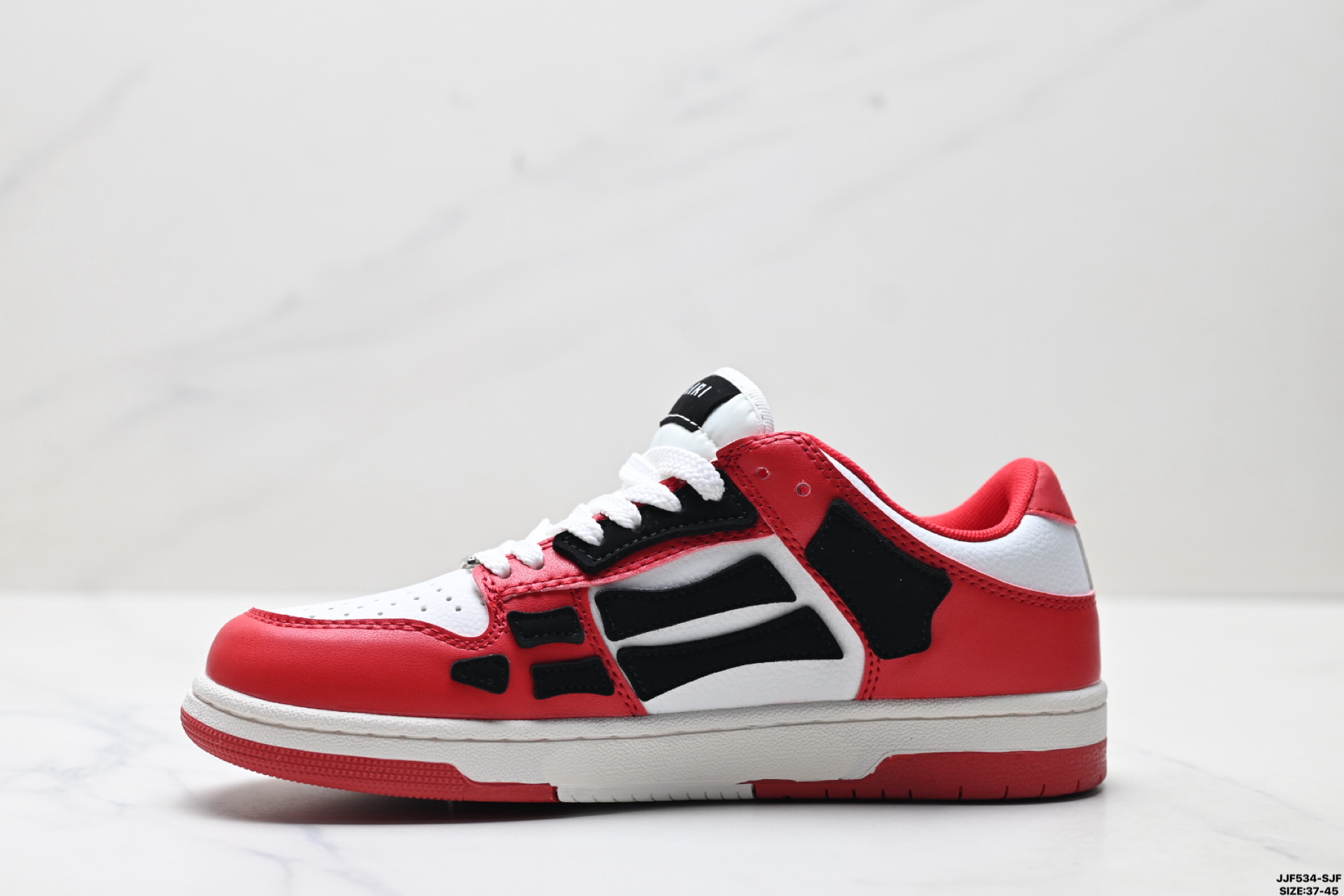 アミリ(AMIRI)の偽物 バレない再現度 スニーカー(レッド×ホワイト×ブラック)は、ブランドの代表的なボーンデザインを現代的にアレンジ。上質なカーフレザーとしなやかなソールを使用し、履くたびに馴染む極上のフィット感を実現。レッドの発色が鮮やかで、足元を華やかに演出。見た目のインパクトと実用性を兼ね備えたバランスの良いモデルで、バレない精密再現が特徴の一足です。