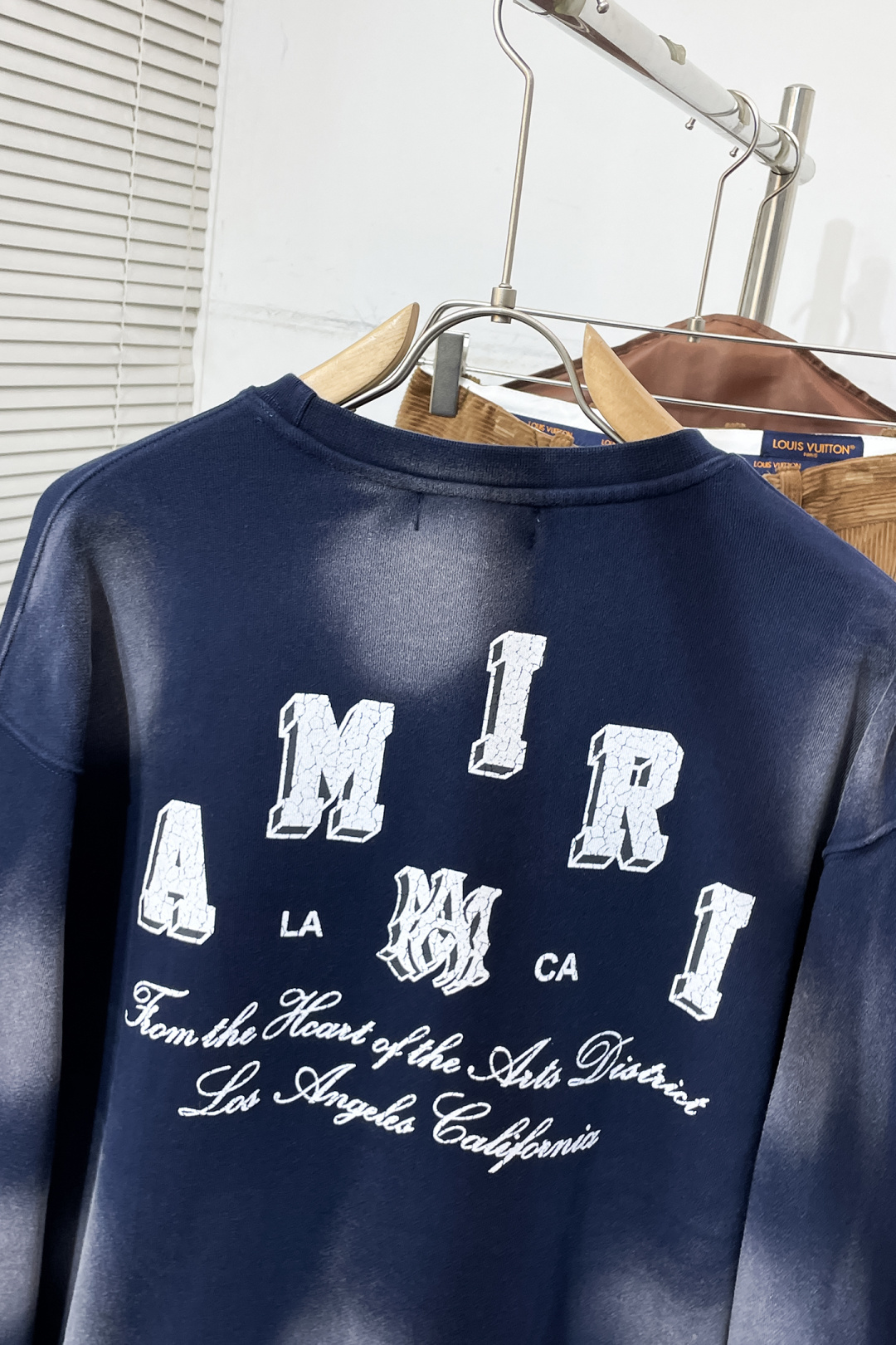 本モデルはアミリらしいアート性とストリート感を融合したクルーネックスウェットです。全体に施された色落ち加工は不自然さがなく、着用を重ねたような奥行きのある表情を演出。フロントは控えめなロゴ配置、バックには存在感のあるプリントを施し、前後で異なる印象を楽しめます。程よくゆとりのあるシルエットで、インナーとしても単体でも活躍。通気性と機能性を兼ね備え、季節を問わず着回しできる完成度の高い一着です。
