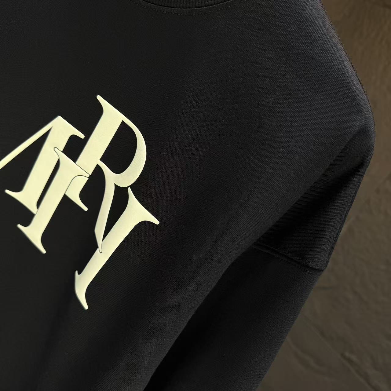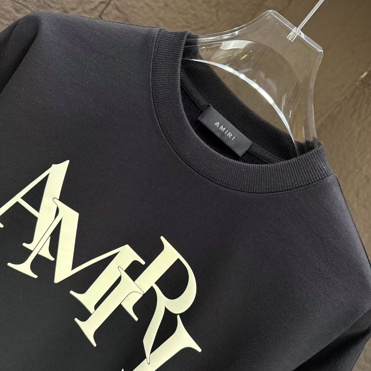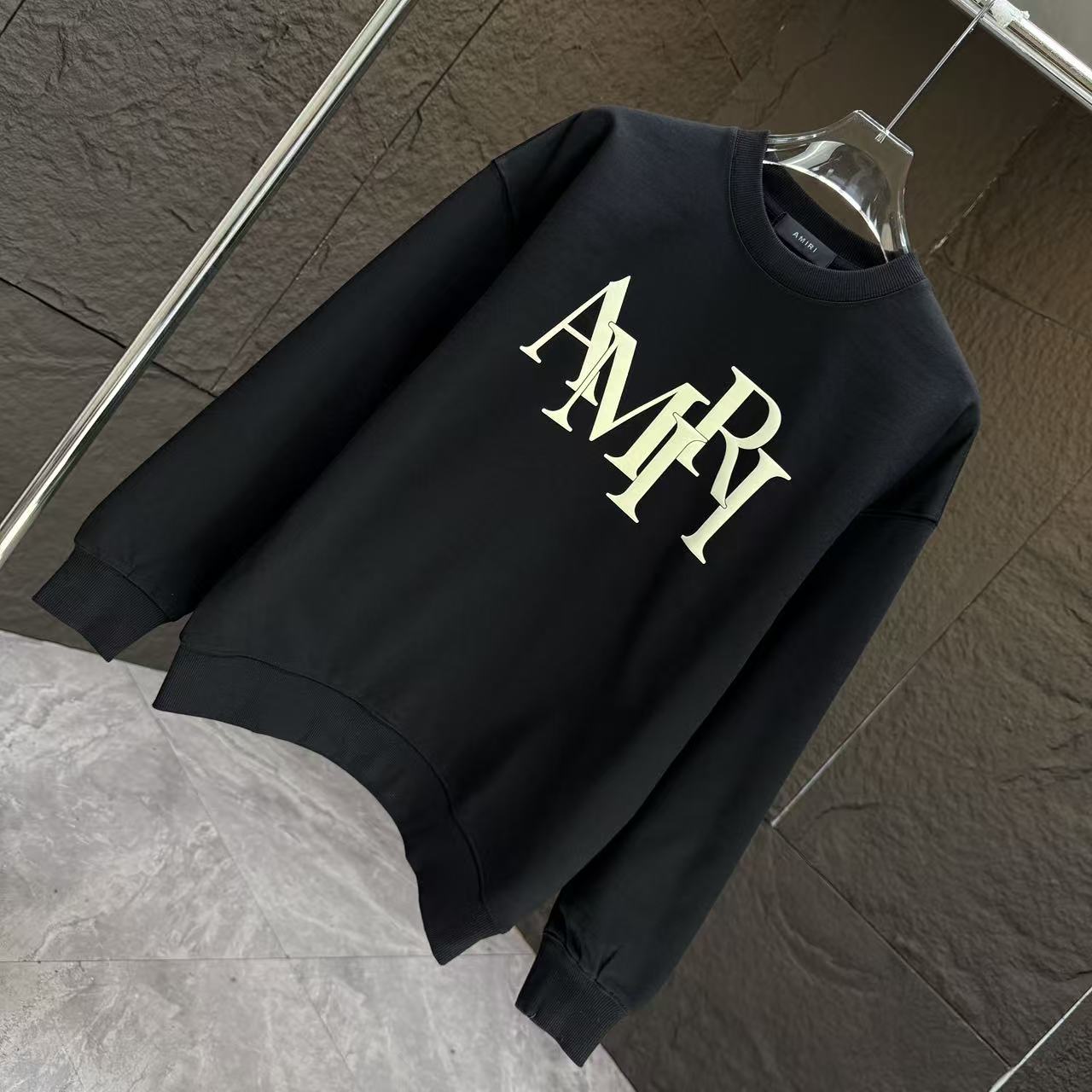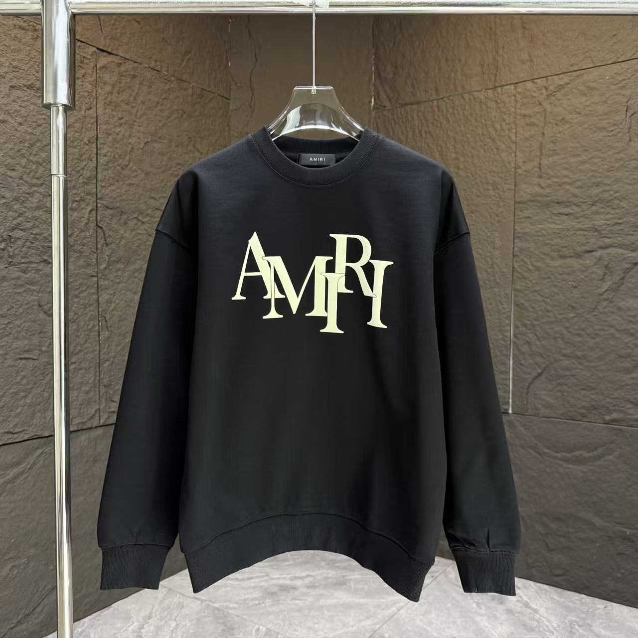 フロント中央に存在感のあるAMIRIロゴを配した、王道デザインのブラックスウェット。n級コピーならではの高精度な再現により、プリントの質感や全体バランスが自然に仕上げられています。程よくゆとりのあるシルエットで、単体着用はもちろん、アウターのインナーとしても活躍。都会的なスタイルを演出したい方におすすめの定番アイテムです。