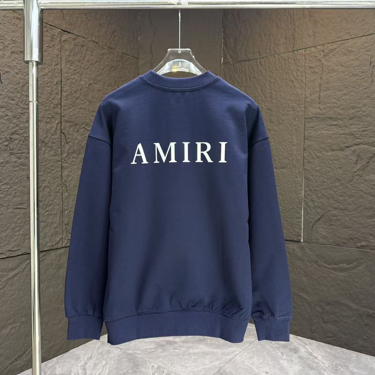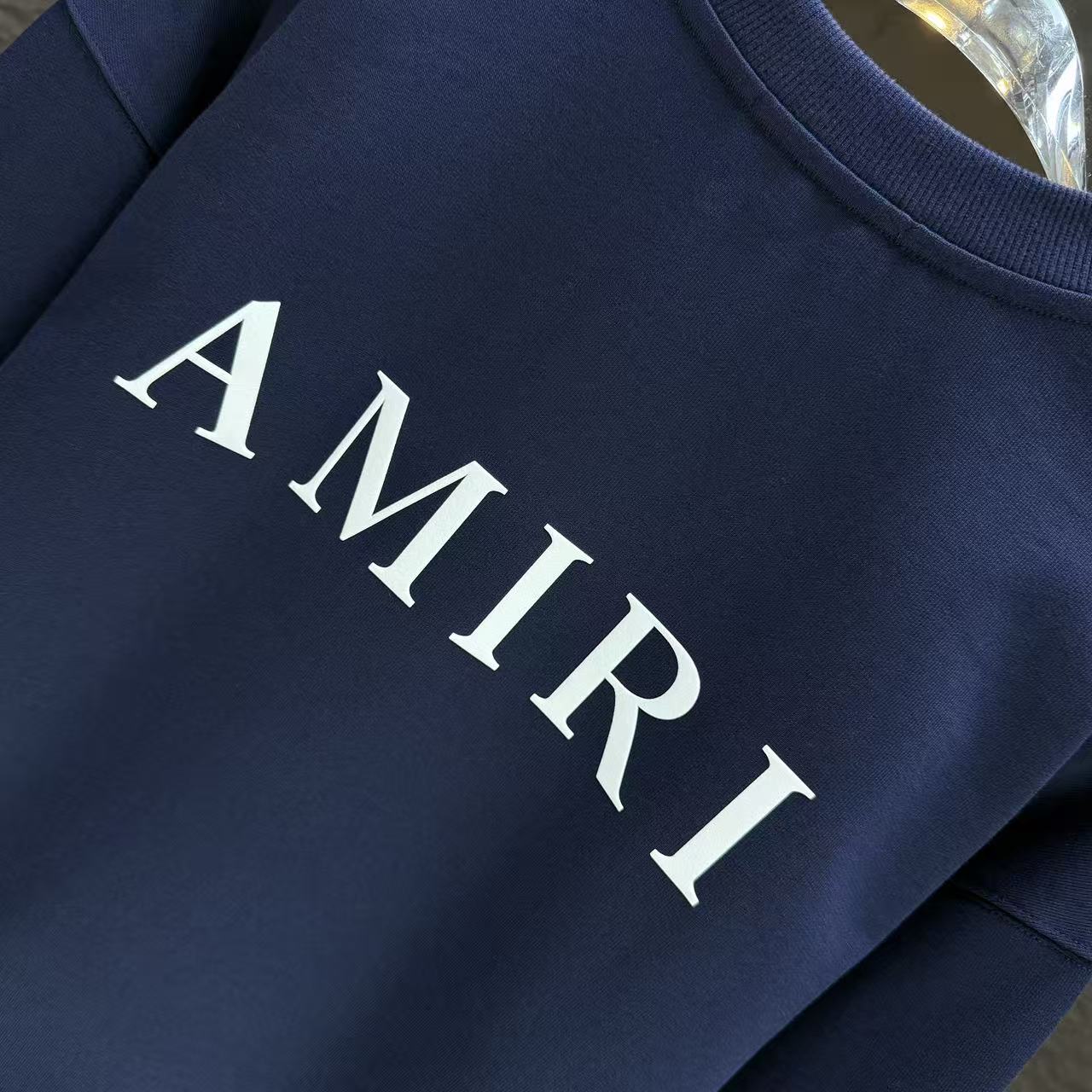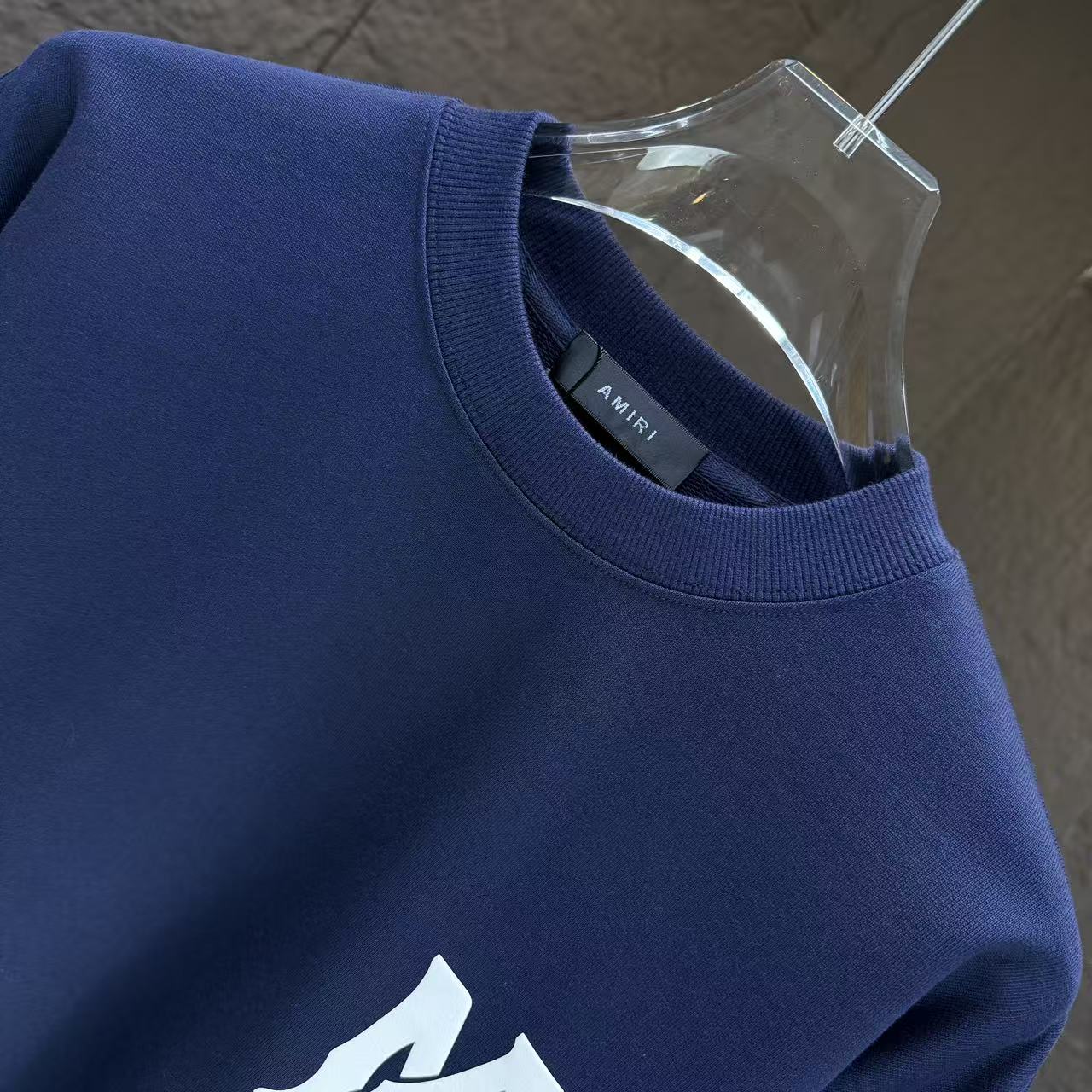 AMIRI スーパーコピー ロゴクルーネックスウェット ネイビー 定番デザイン 高級感仕上げ