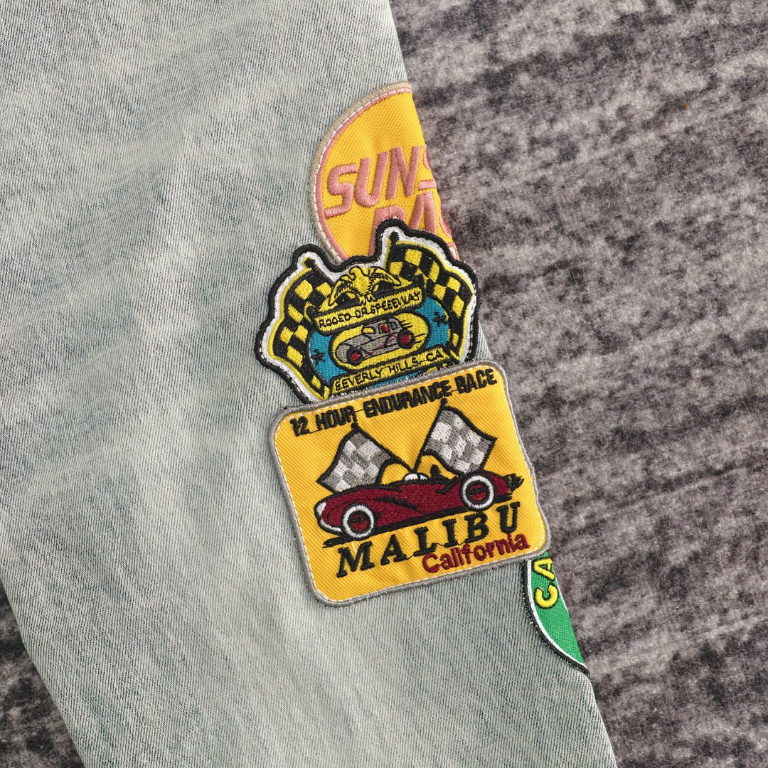 複数のワッペンをバランス良く配置した、アミリらしい存在感のあるデニムパンツです。ウォッシュ加工による自然な色落ちと、計算されたダメージ表現が立体感を生み、一本でスタイリングの主役になります。脚に沿うスリムなラインながら、生地には程よい柔軟性があり、長時間の着用でもストレスを感じにくい設計。ストリートからモードまで幅広く活躍する一本です。