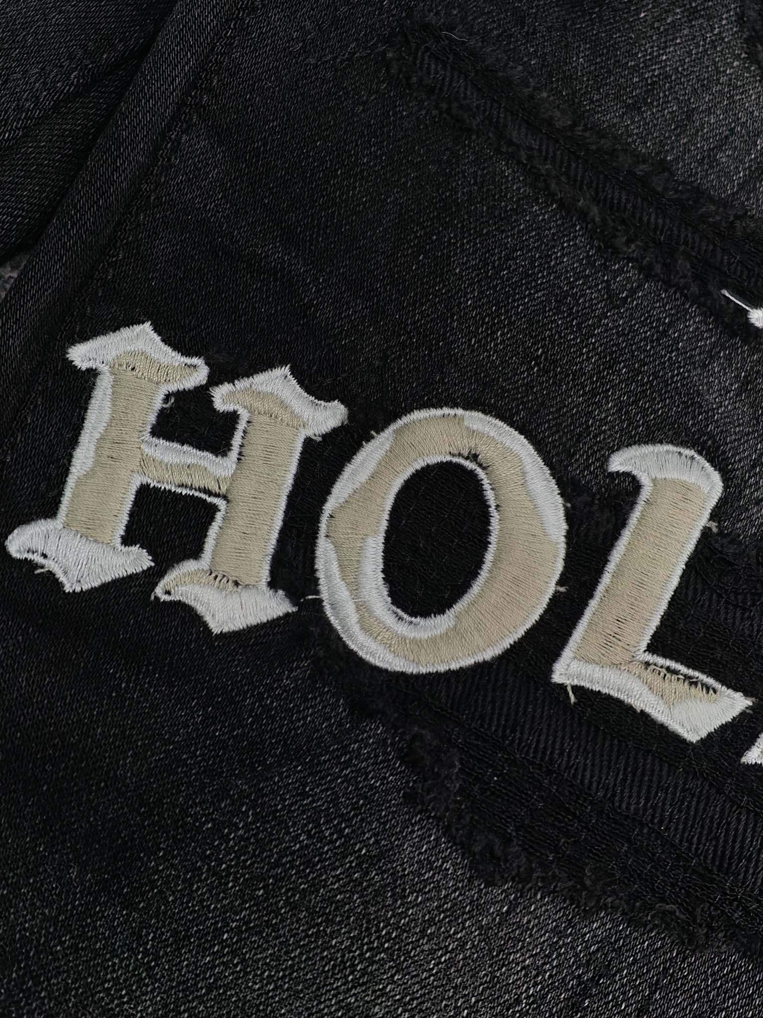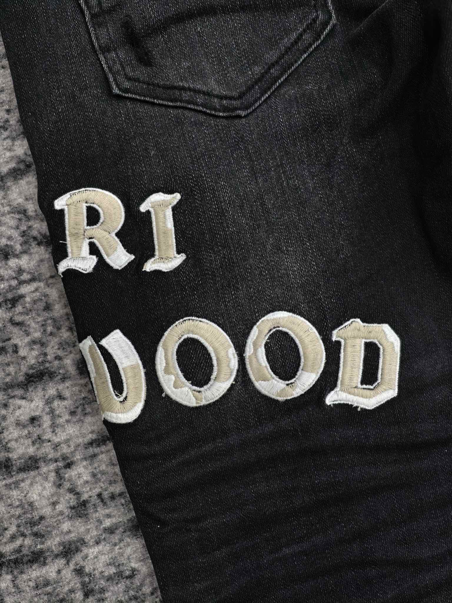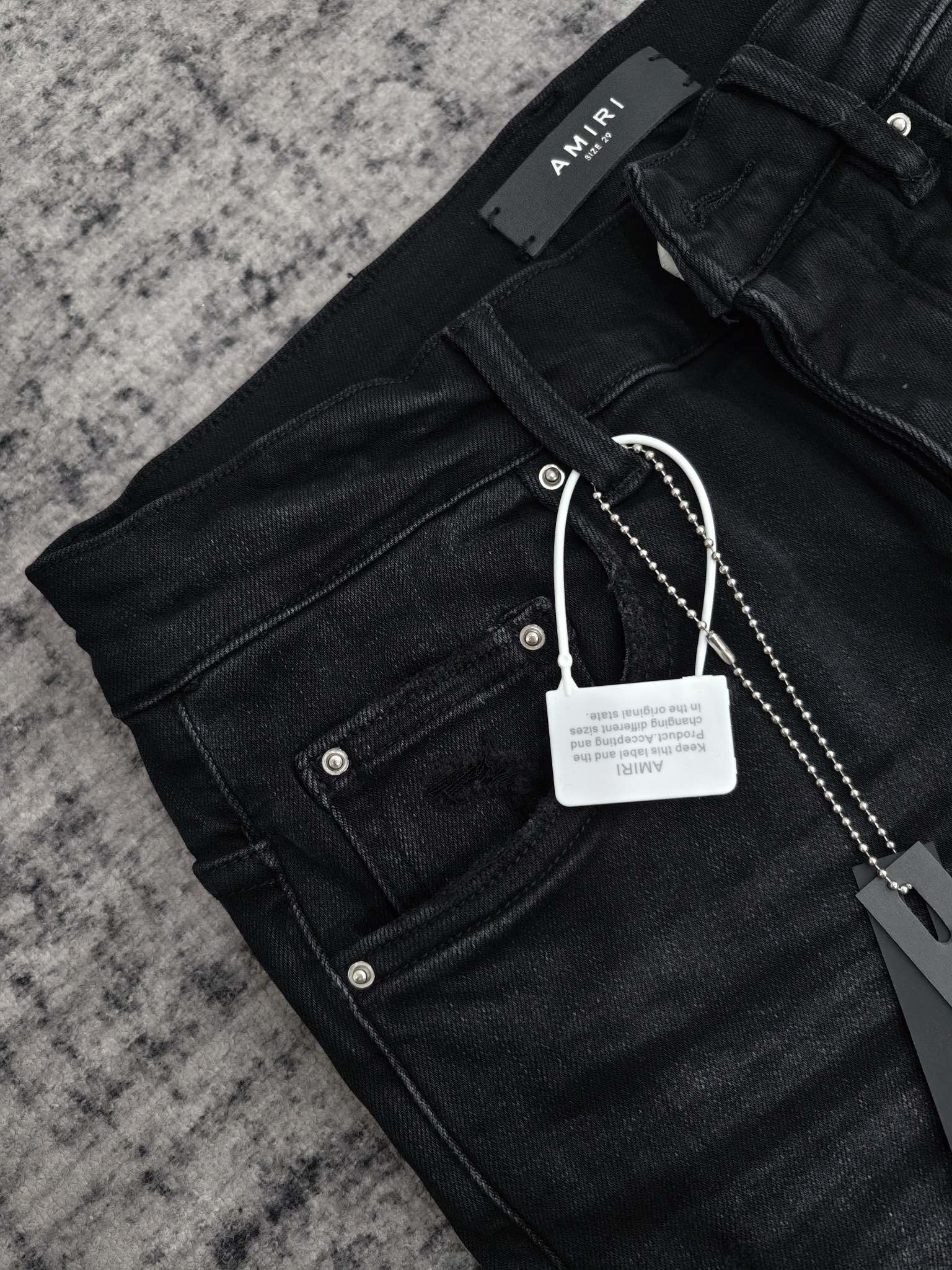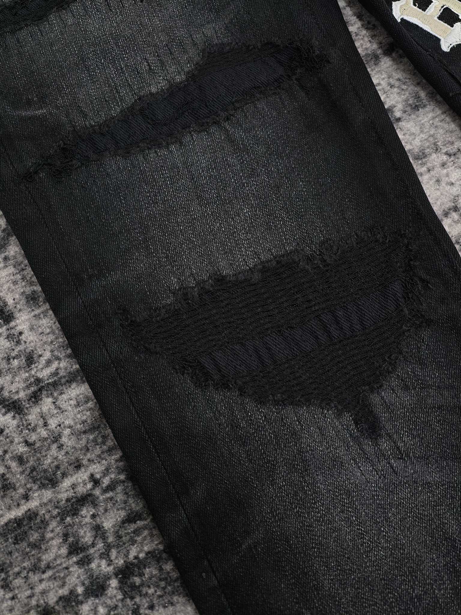 深みのあるブラックカラーをベースに、ブランドロゴを大胆に配置したデニムパンツです。過度な装飾を抑えつつ、文字デザインでアミリらしい個性を表現。脚のラインを美しく見せるスリムフィット設計で、ジャケットやスニーカーとも相性が良好です。カジュアルから大人っぽいスタイルまで幅広く対応でき、一本持っておくと重宝するデザインです。