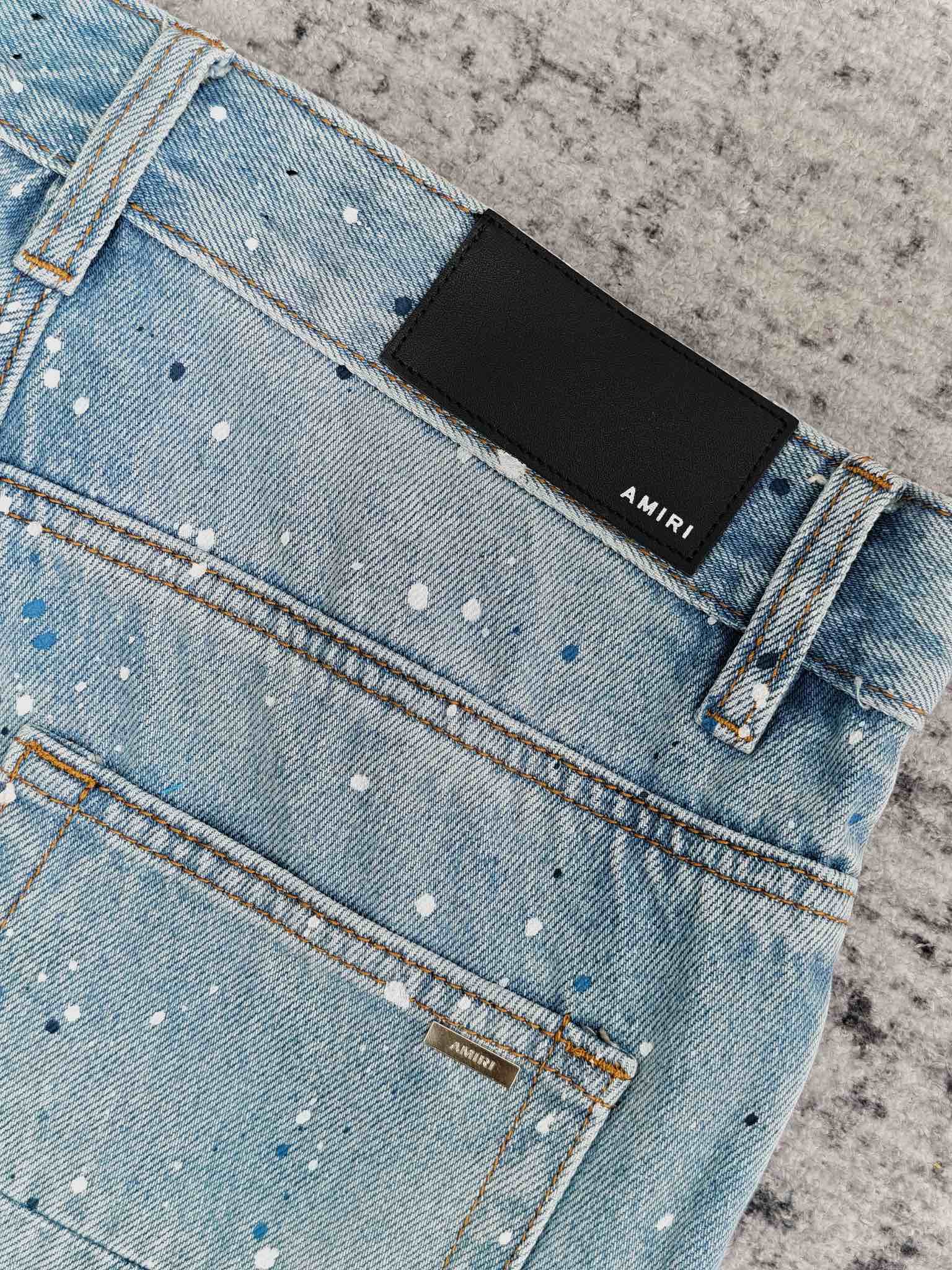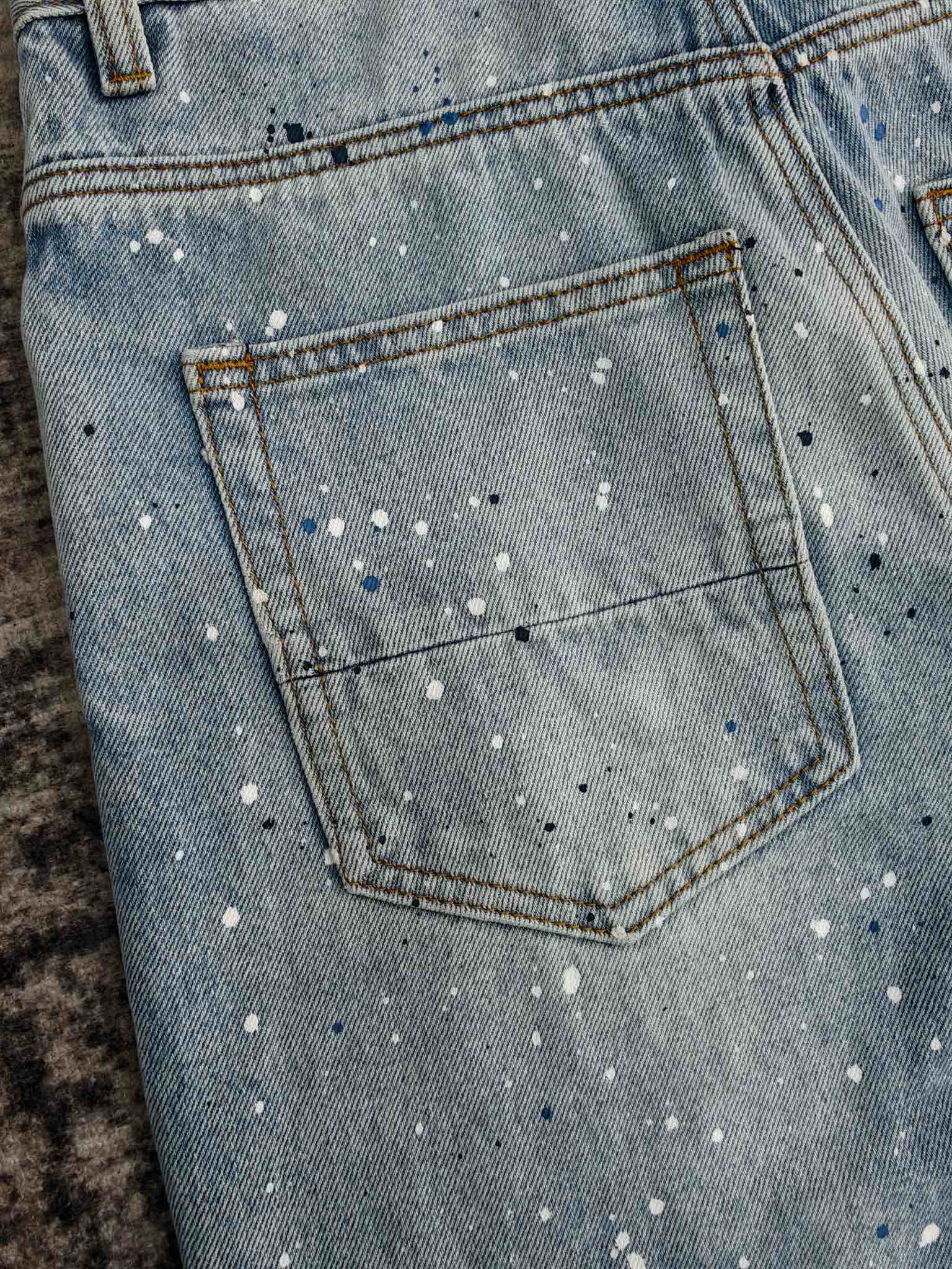 ペイント加工を施した個性派デニムパンツで、アミリならではのアート性を強く感じさせるデザインです。派手になりすぎないバランスで加工が施されており、シンプルなトップスと合わせるだけでスタイルが完成します。ストレート仕様のため動きやすく、デザイン性と実用性を兼ね備えた一本としておすすめです。