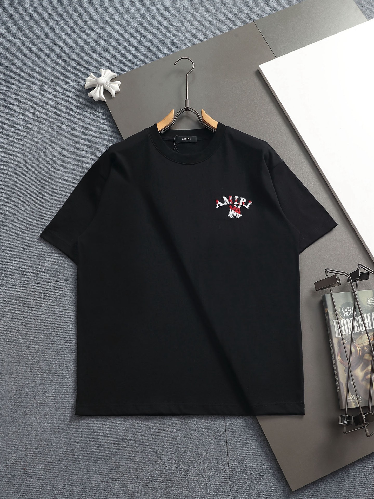 AMIRI スーパーコピー ロゴ刺繍Tシャツ ミニロゴデザイン ストリート感高級半袖|スーパーコピー服