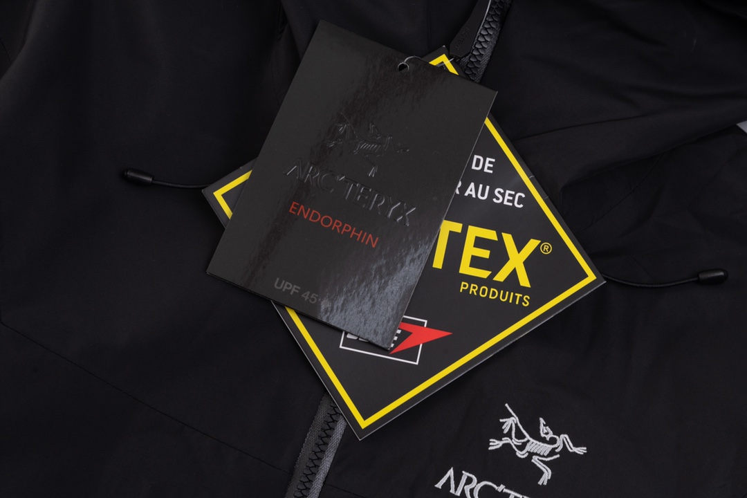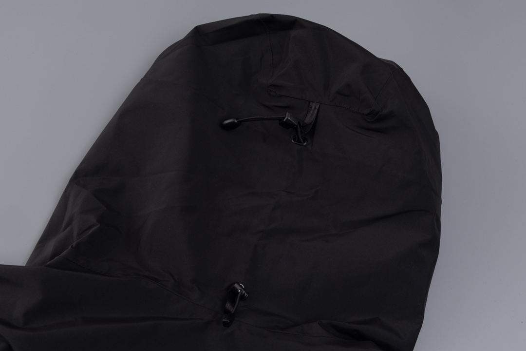 前後どちらから見てもバランスの良いシルエットが特長のアークテリクス(ARC’TERYX)風ブラックモデル。無駄を削いだデザインで、オンオフ問わず着用可能。フードと裾のラインが自然に整い、重ね着もしやすい一着です。定番色を求める方に安定した選択肢となります。