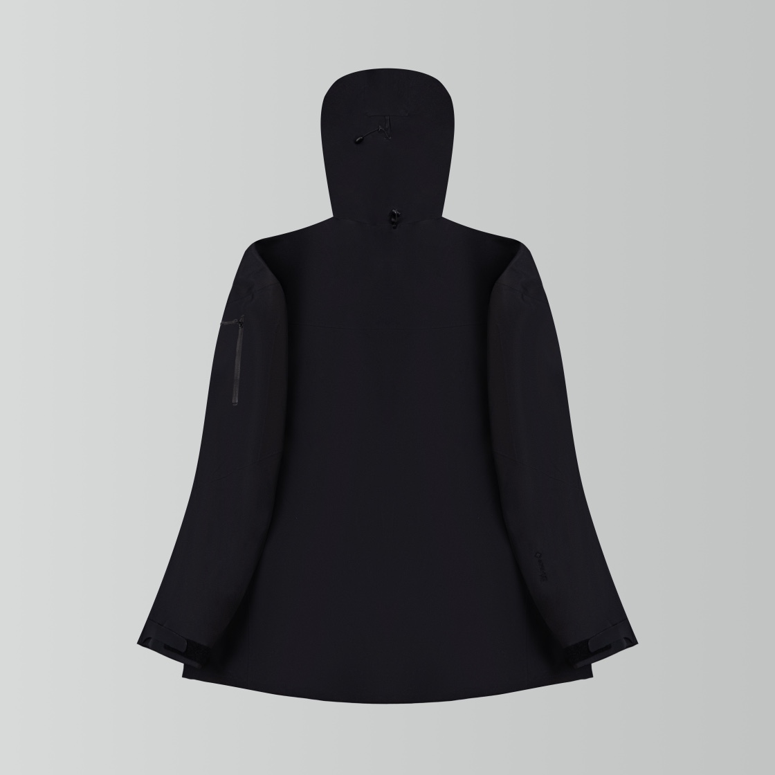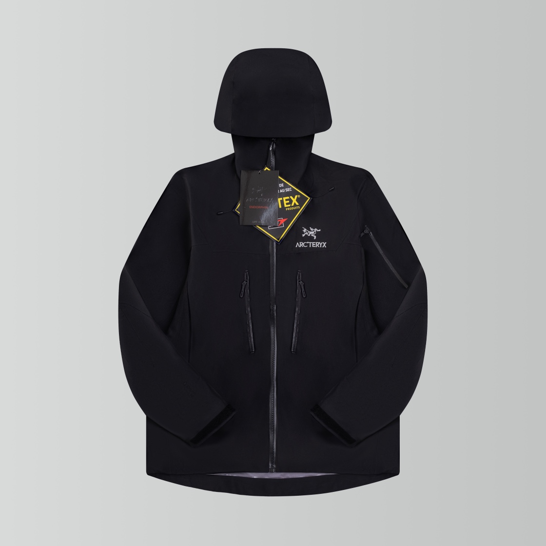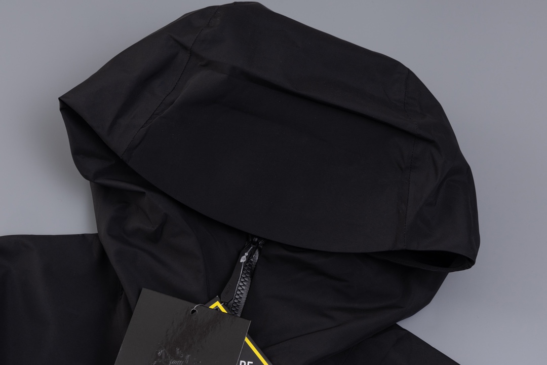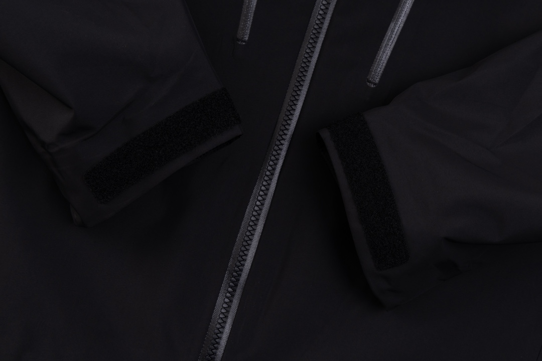 前後どちらから見てもバランスの良いシルエットが特長のアークテリクス(ARC’TERYX)風ブラックモデル。無駄を削いだデザインで、オンオフ問わず着用可能。フードと裾のラインが自然に整い、重ね着もしやすい一着です。定番色を求める方に安定した選択肢となります。