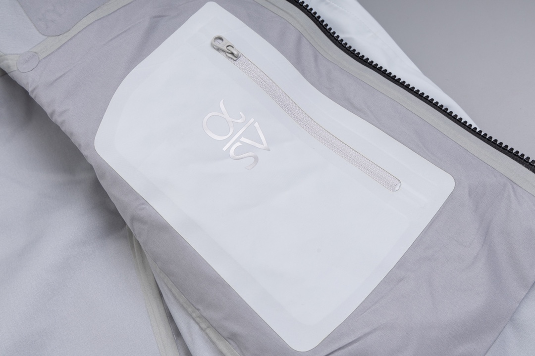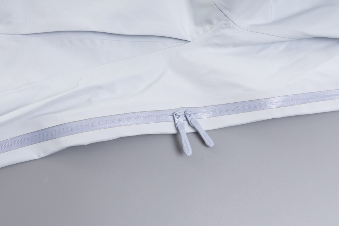 ホワイト特有の清潔感が際立つアークテリクス(ARC’TERYX)風モデル。構造線を活かした裁断により、膨張しがちな色味でもスマートに見せます。フード周りのフィット感やジップ操作も良好で、日常から旅行まで幅広く活躍。軽やかなスタイルを求める方におすすめです。