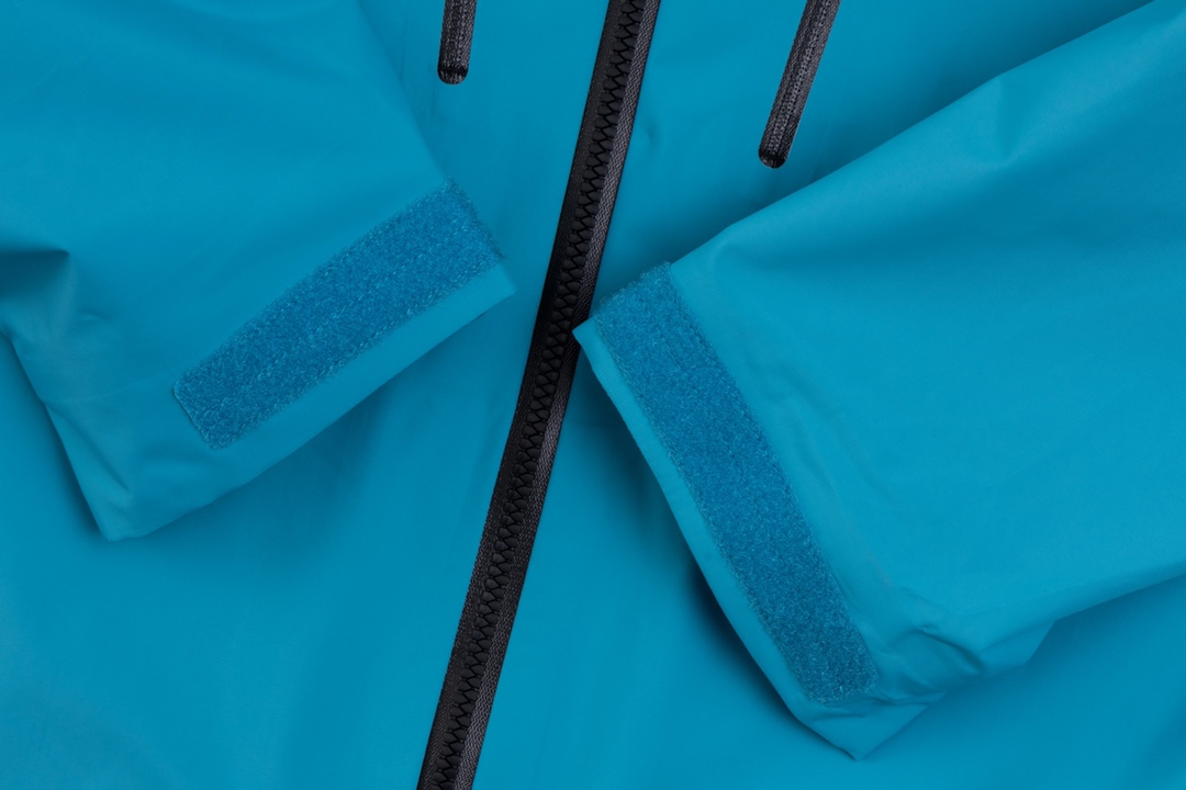 爽やかなブルーが目を引くアークテリクス(ARC’TERYX)風シェル。シンプルながら細かな切替とポケット配置が計算され、機能とデザインのバランスに優れています。フードの被りも安定しており、視界を遮りにくいのが特長。定番色とは異なるカラーを楽しみたい方や、コーディネートのアクセントとして取り入れたい方におすすめです。