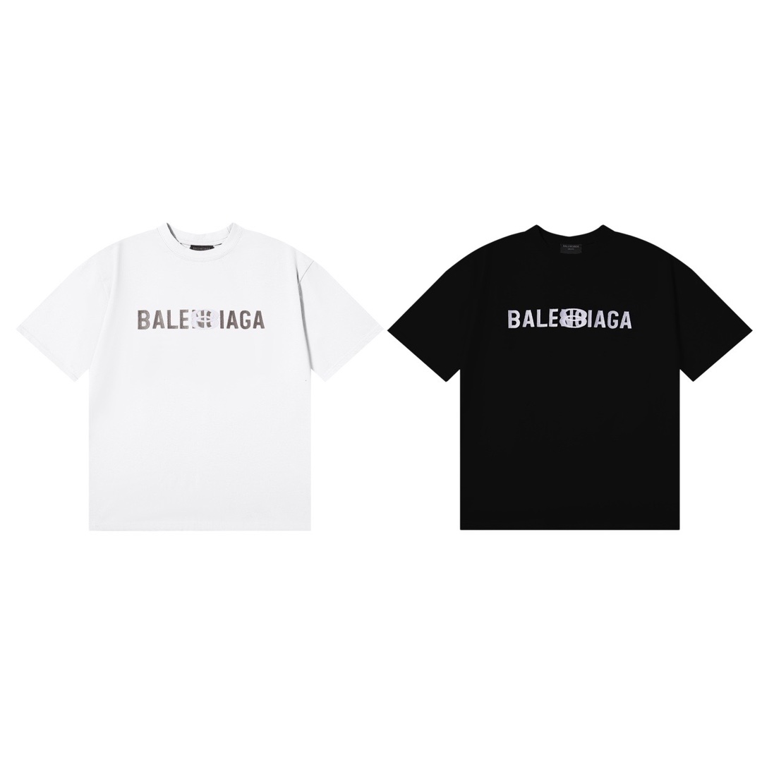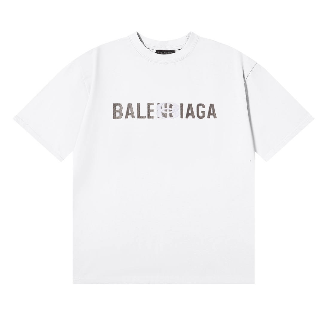 BALENCIAGA(バレンシアガ) 偽物 定番ロゴ刺繍カップルタイプラウンドネック半袖Tシャツ 通販