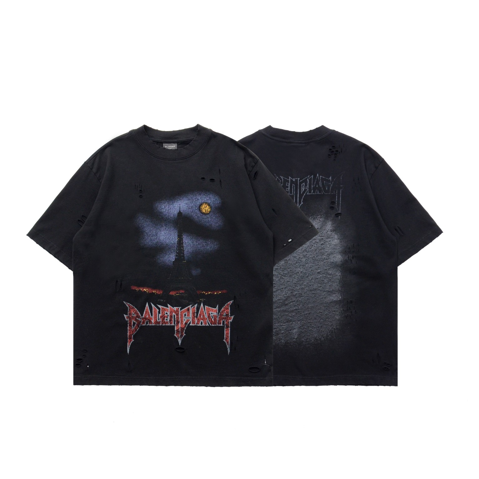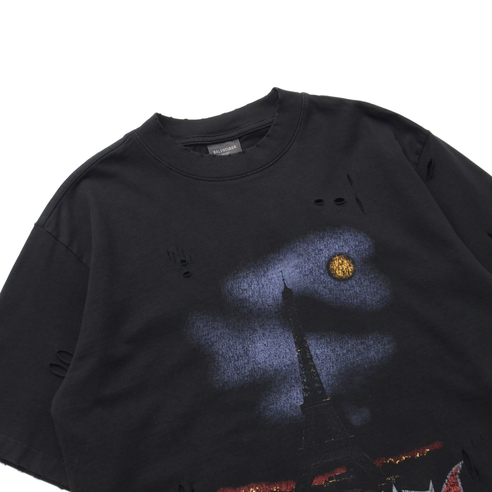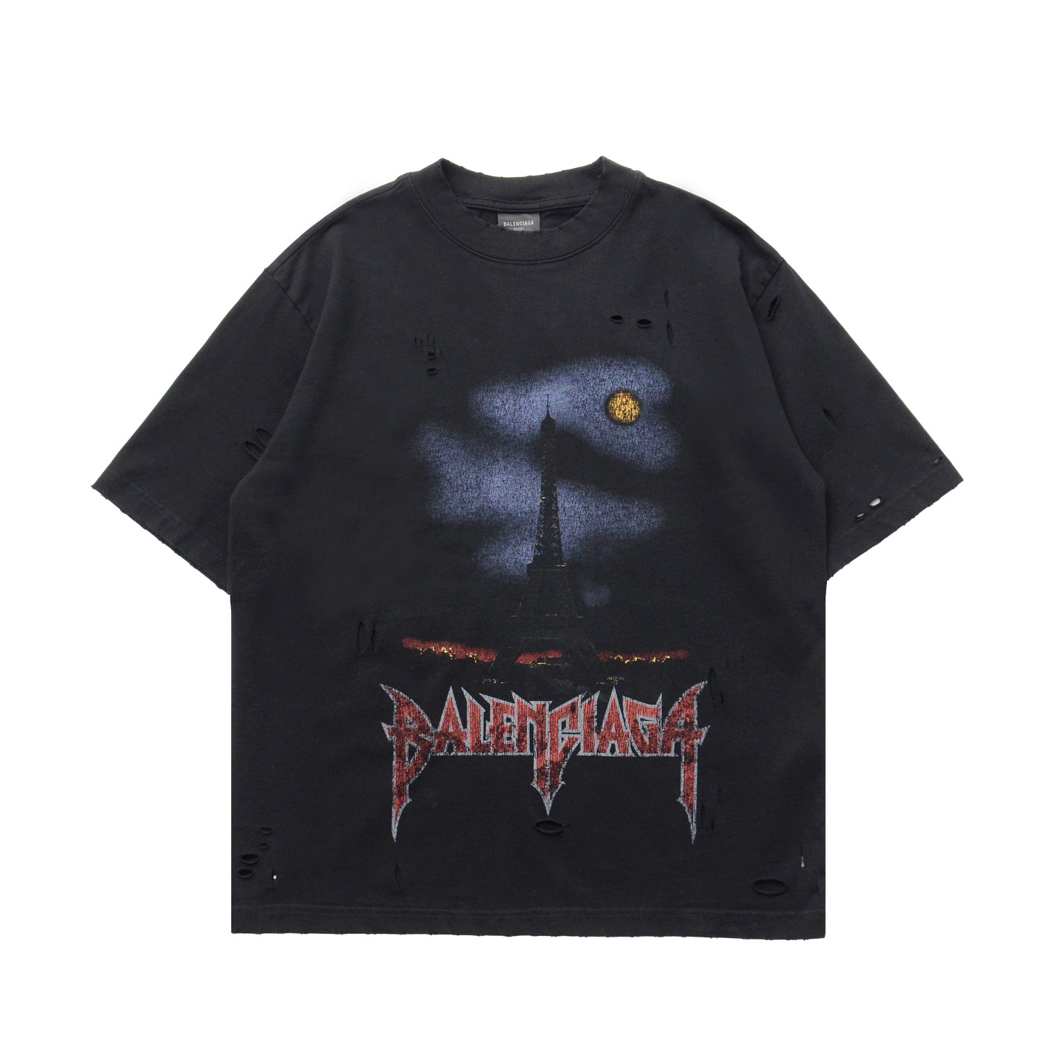 BALENCIAGA(バレンシアガ)コピー エッフェル塔インクジェット落書きラウンドネック半袖Tシャツ 通販